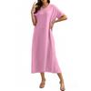Модное женское однотонное платье с V-образным вырезом, длинное, свободное — купить товар онлайн с бесплатной доставкой до всему миру!