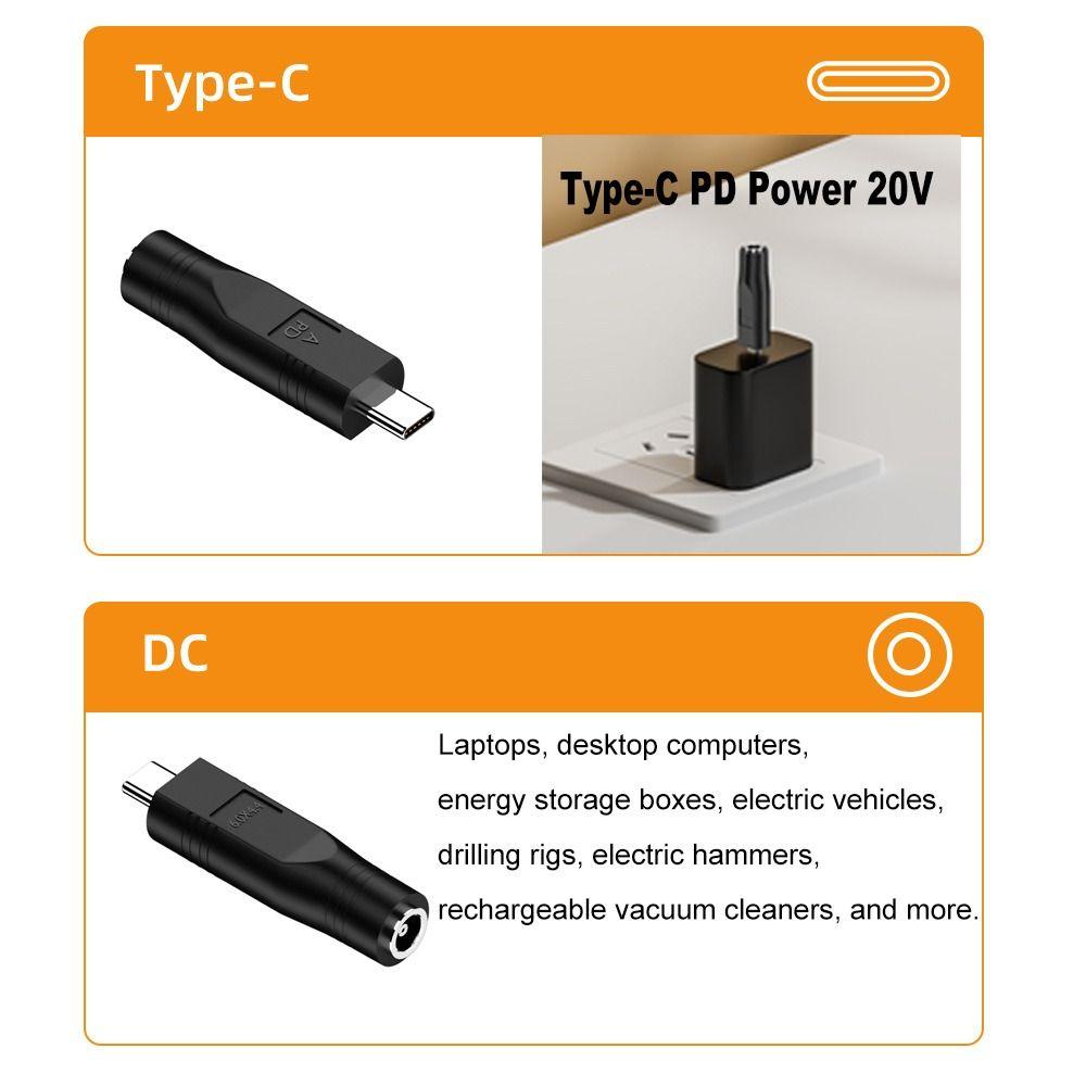 Адаптер питания для ноутбука 20 В 5 А PD 100 Вт Разъем USB Type C к DC Конвертер Электродрель