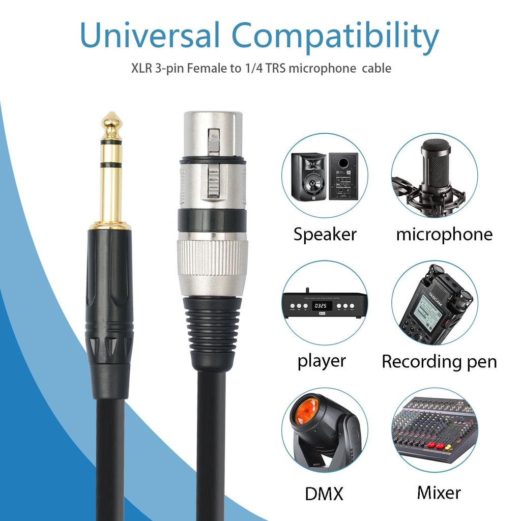 Audio-Technica Microphone Cable 6.35mm Conversion XLR Cable 6.35mm Male to XLR Female Audio Cable Microphone Cable Gold Plated Plug High Durability 1m