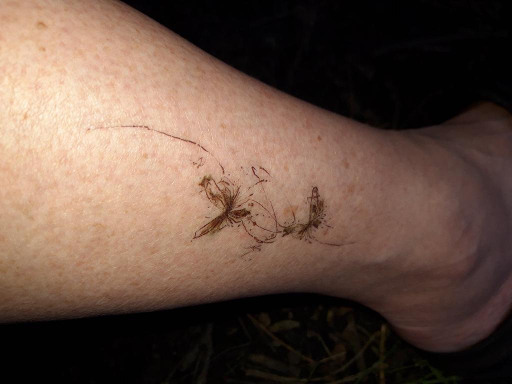 По факту как обычная детская переводная татушка, только больше, красивее и дороже. Иногда подобные держались всего пару дней, а иногда их следы оставались больше недели. Просто прикладываешь и хорошенько намачиваешь. Держишь секунд 30 потом отклеиваешь.