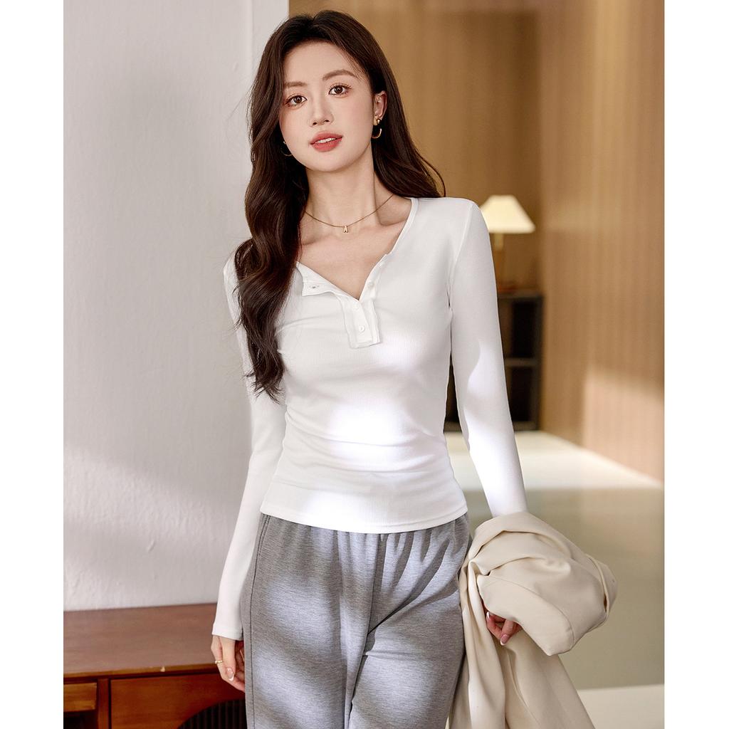 Футболка с длинным рукавом Chic Design Sense Button, женская, новая, осенне-зимняя, с полуоткрытым воротником, из чистого хлопка — купить товар онлайн с бесплатной доставкой по всему миру!