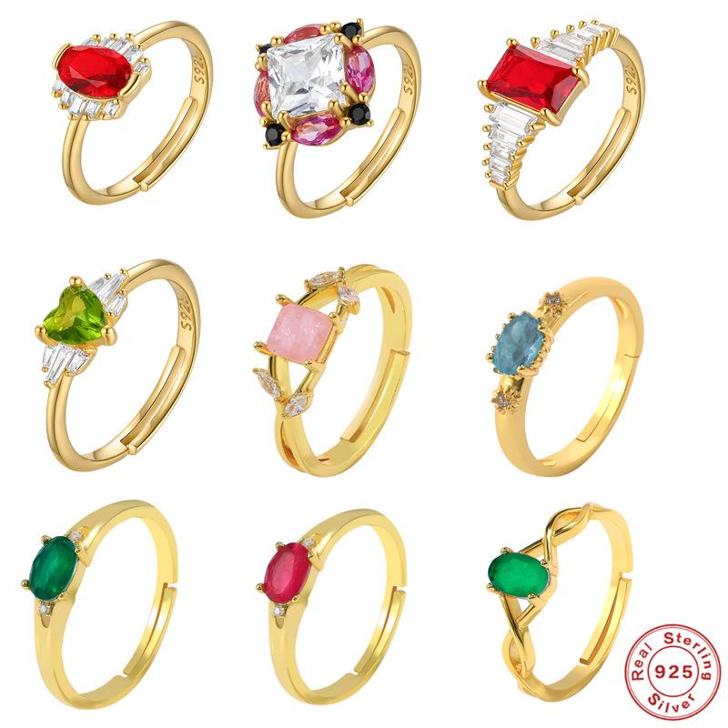 S925 Sterling Silver Luxury Noble Natural Stone Ring Gold Plated Open Wedding Engagement Ring Index Finger Ring