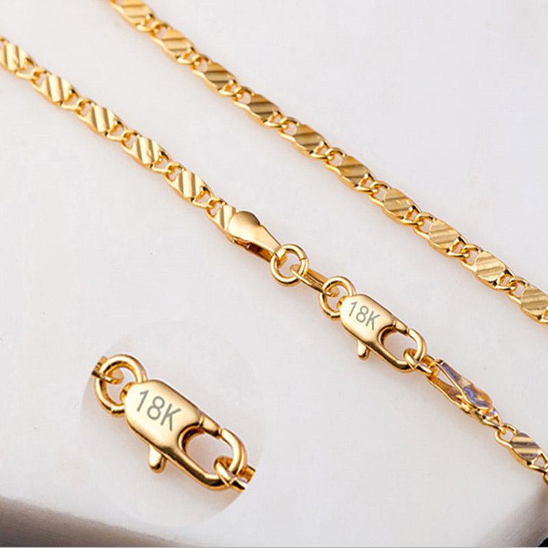40-60 см 18-каратное золото 925 пробы серебро шарм 2 мм плоская цепь ожерелья для женщин мужчин роскошные модные вечерние свадебные украшения