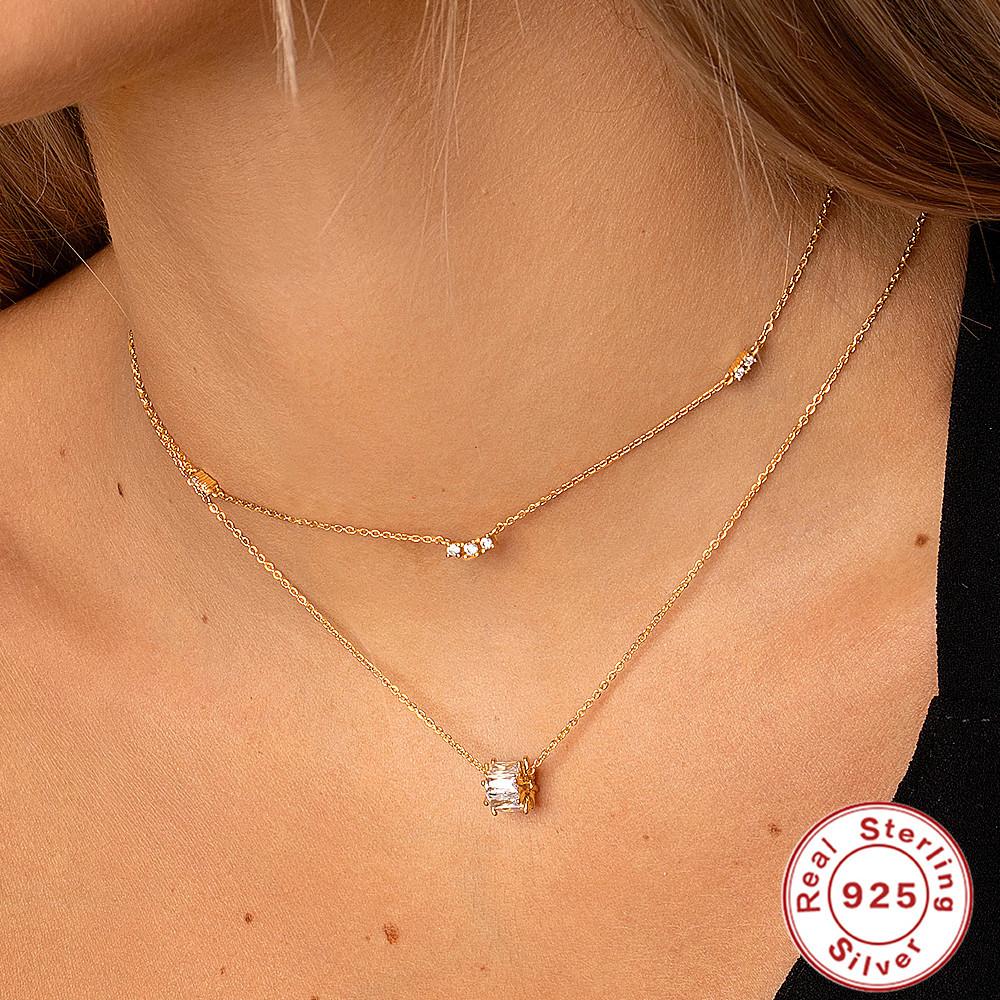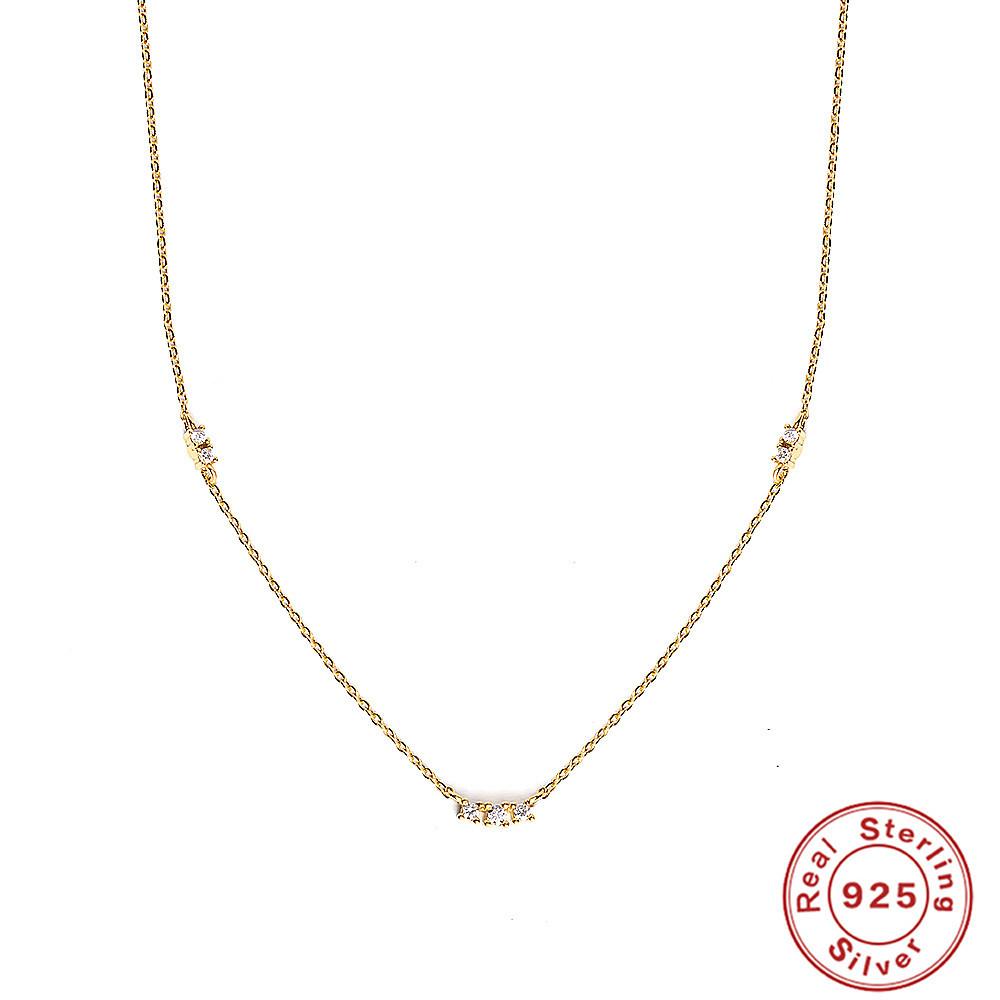 Стильное и простое женское ожерелье на ключицу из стерлингового серебра 925 пробы с тройным набором украшений и бриллиантами