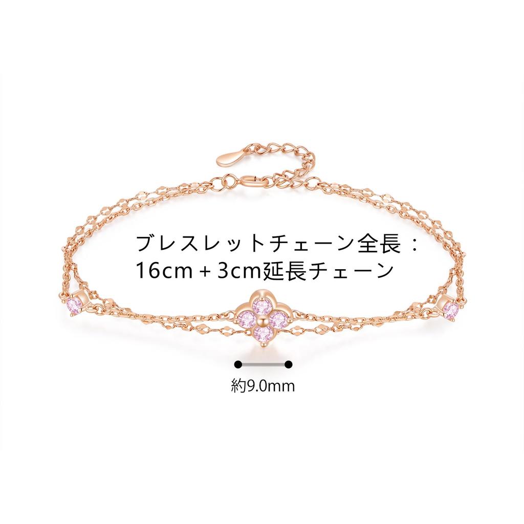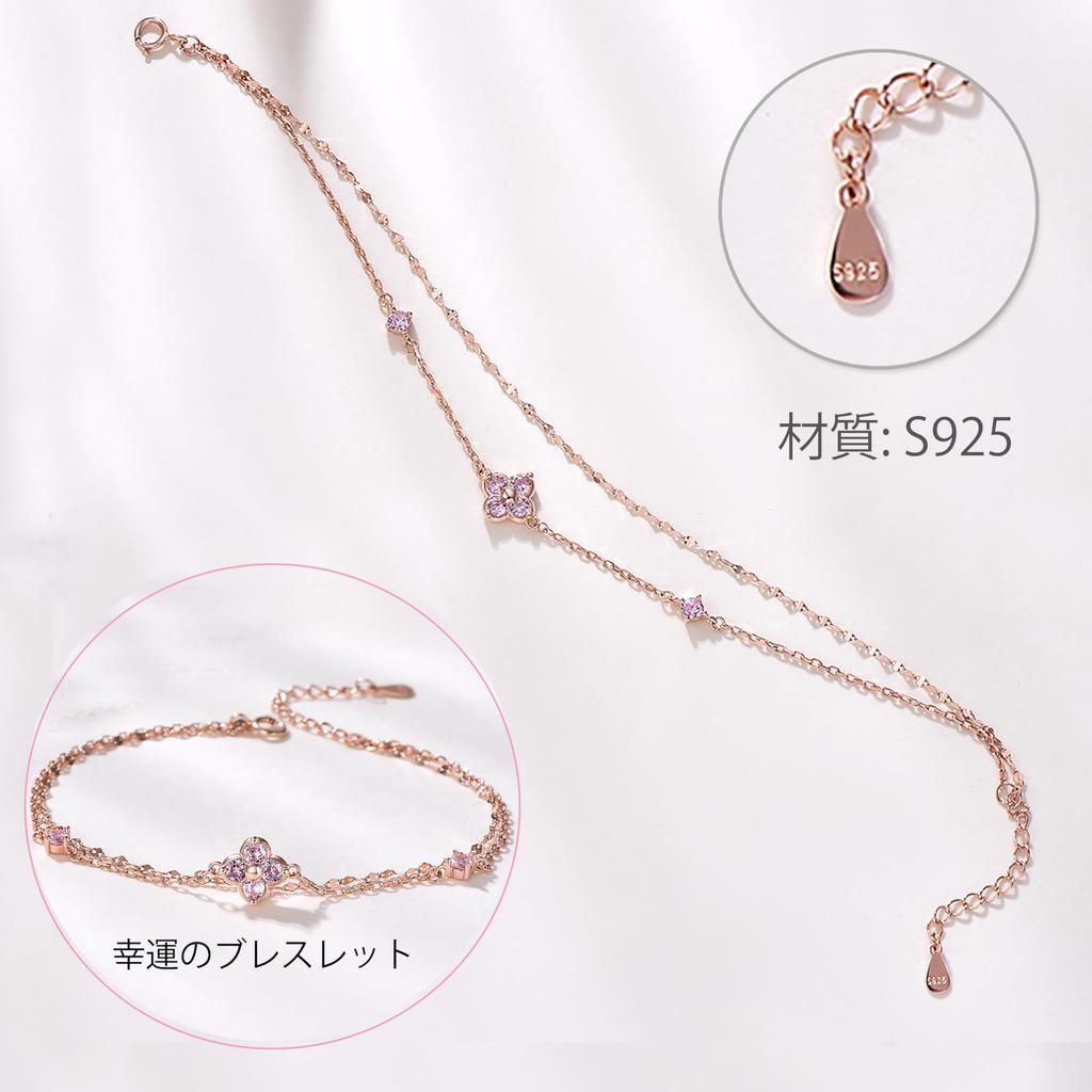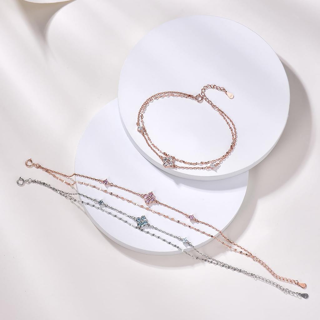 Браслет из розового циркония Четырехлистный клевер из серебра 925 пробы Гипоаллергенный браслет из розового золота Летний аксессуар Простой день рождения Популярный женский FH.bird