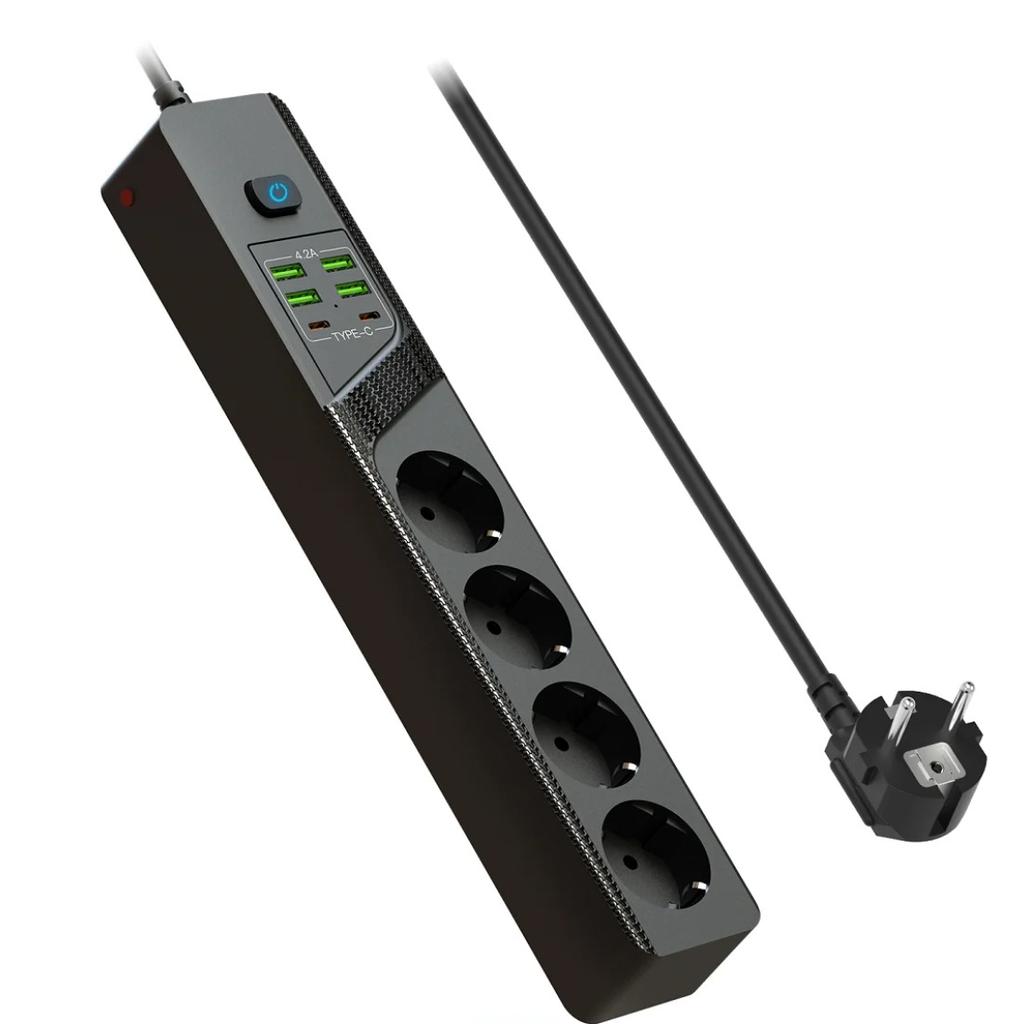 Сетевой фильтр с вилкой EU, защита от перегрузки, розетка-мультиразветвитель с 4 розетками переменного тока, 4 портами USB-A, 2 портами USB-C, сетевой фильтр для дома