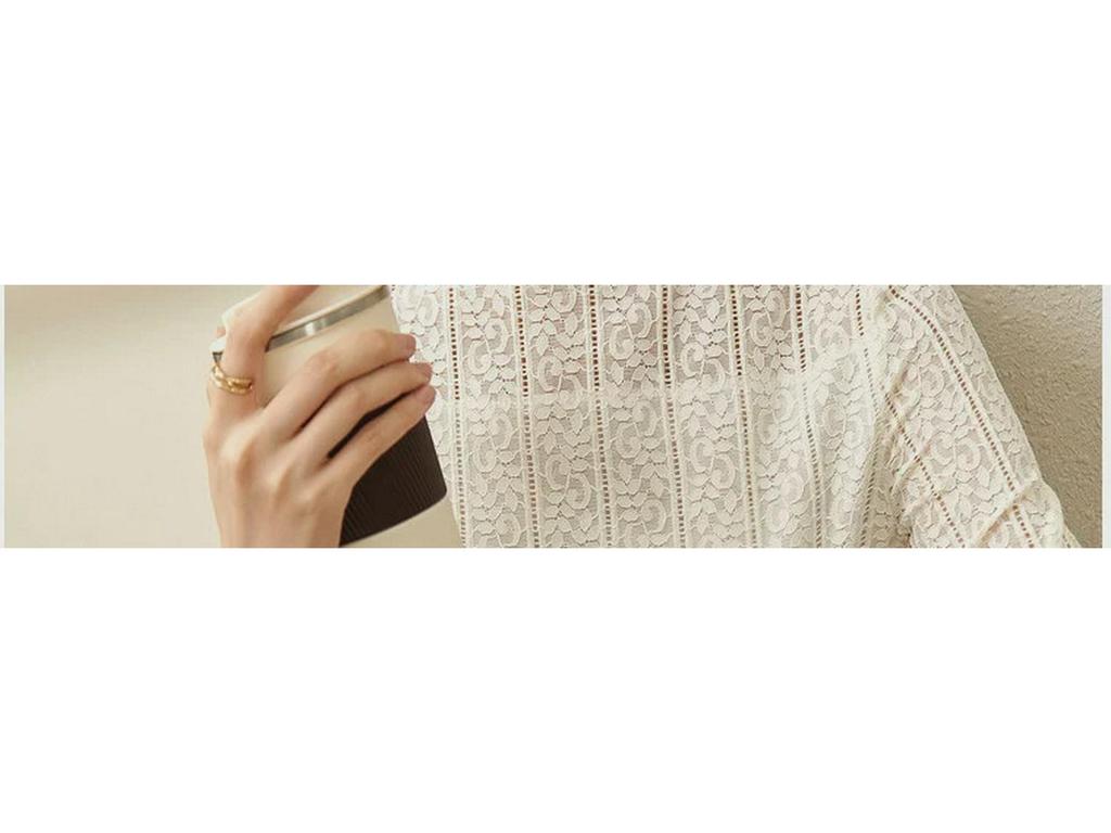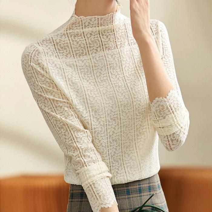 Женская белая кружевная сетчатая рубашка — облегающий крой, стильный французский топ на осень/зиму 2024 г.