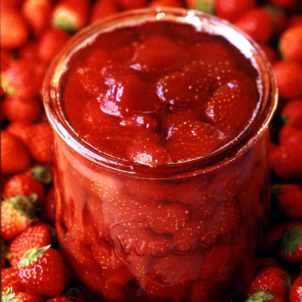 Фирменная клубника WECK придает блюду милый вид.