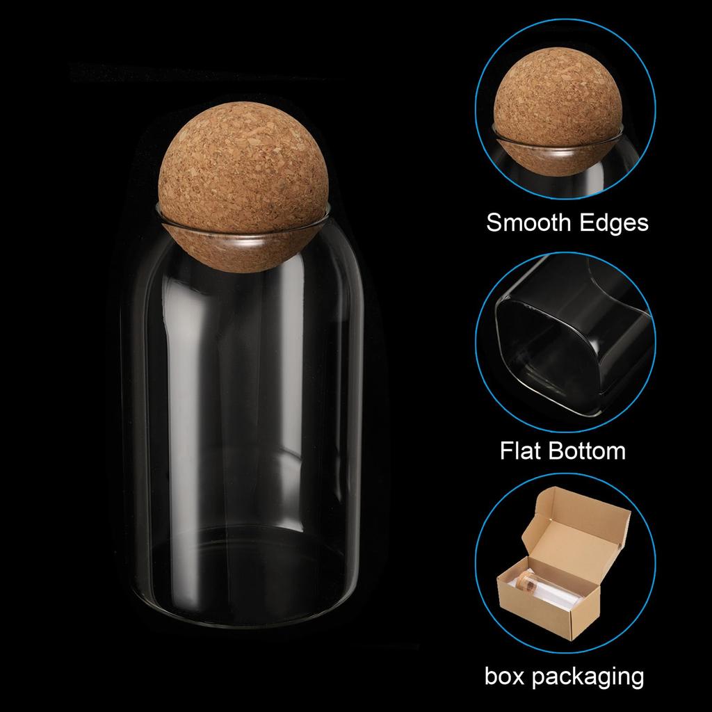 Преимущества 1. Контейнер для хранения продуктов изготовлен из высокопрочного боросиликатного стекла, которое обладает хорошей светопропускаемостью и высокой прочностью на разрыв.. Оно прочнее обычного стекла и не разобьется из-за вибрации или удара.. 2. Стеклянная бутылка оснащена шариковой пробкой, которая создает сухую и чистую среду для хранения продуктов, сохраняя их свежесть.
