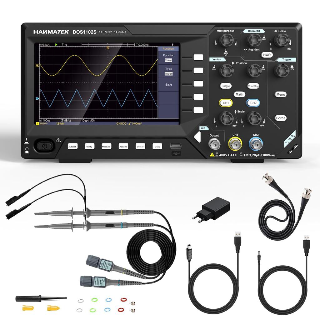 Цифровой запоминающий осциллограф HANMATEK DOS1102S — это современный, но простой в использовании инструмент, предназначенный для инженеров, преподавателей и любителей электроники.. Благодаря полосе пропускания 110 МГц и частоте дискретизации в реальном времени 2 × 500 Мвыб/с этот осциллограф обеспечивает высокоточный анализ формы сигнала и высокоскоростное получение сигнала.