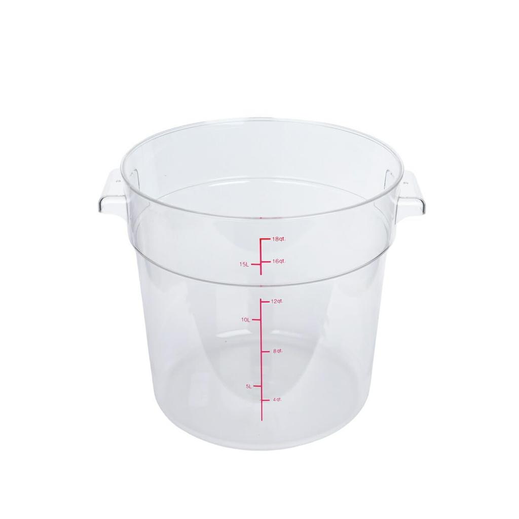 Контейнер для пищевых продуктов Thunder Group, контейнер для хранения, 18 квартов, градуированный круглый корпус, без крышки, пищевые ингредиенты, поликарбонат, прозрачный, PLRFT318PC, 17,03 л