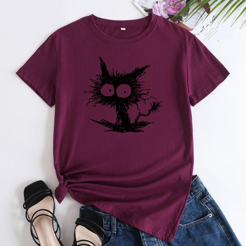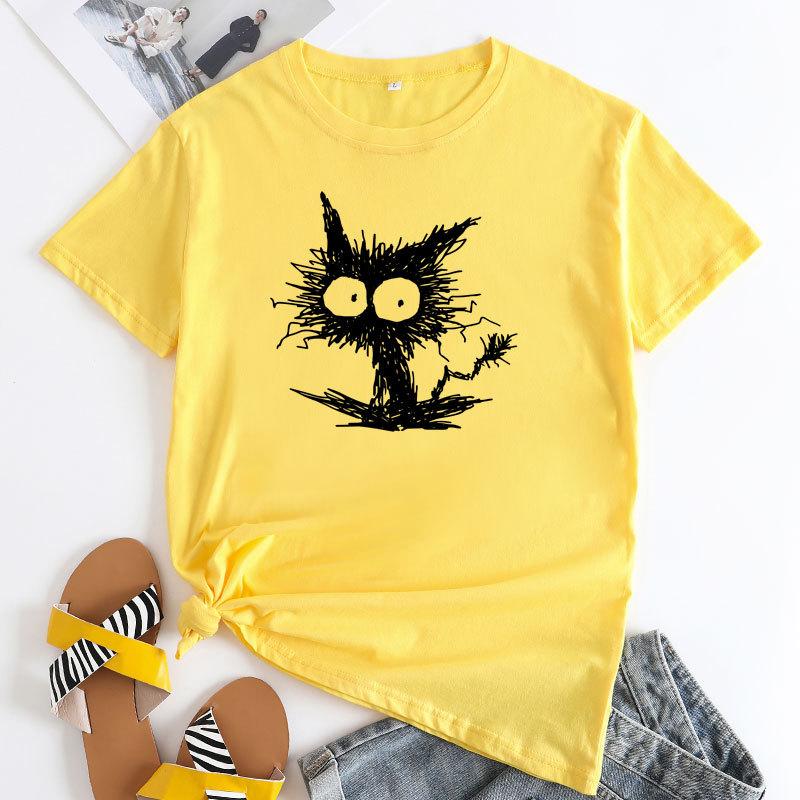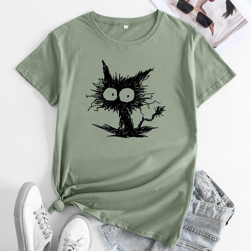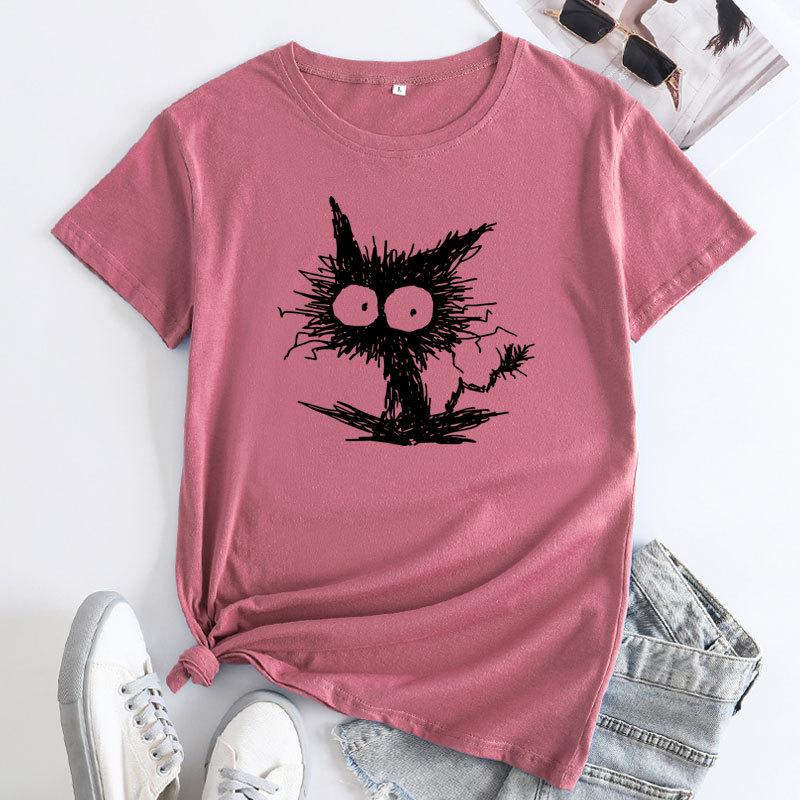 Повседневная футболка с короткими рукавами из чистого хлопка с принтом кота для женщин
