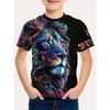 Детская футболка с 3D-принтом Детская одежда для мальчиков Летний отдых Футболка с короткими рукавами с 3D-принтом Животное Тигр Футболка