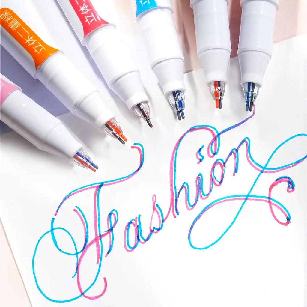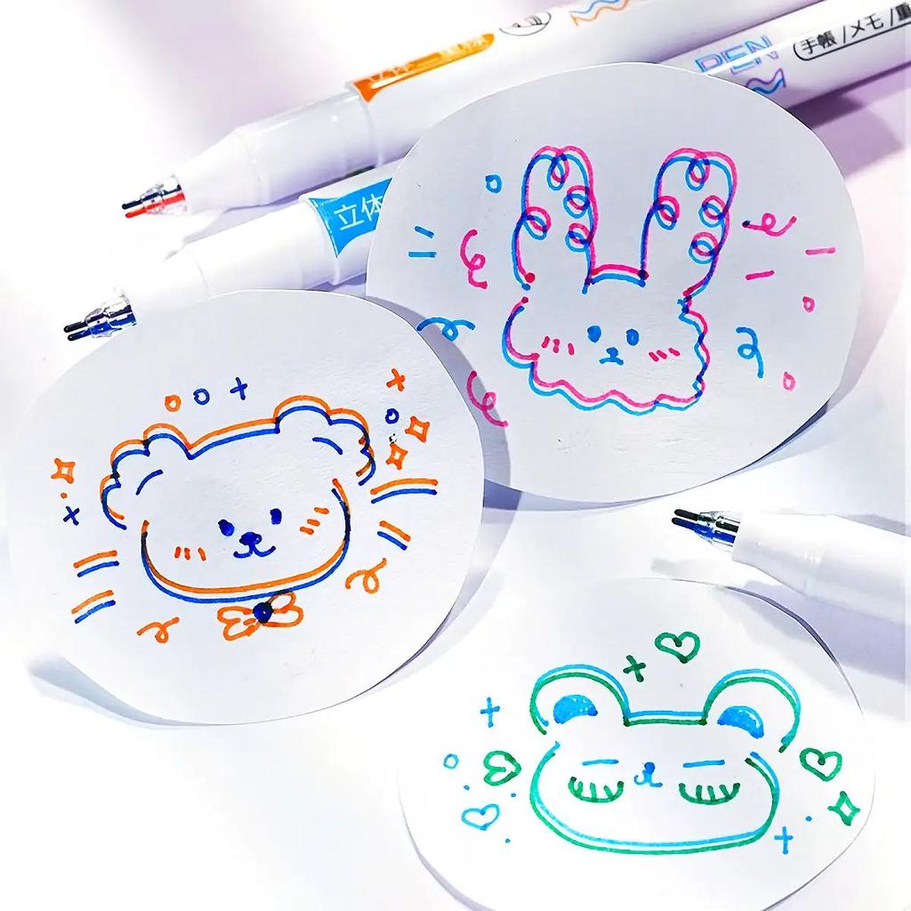 6 шт. двухцветных цветных маркеров со стереоэффектом, одинарная головка, двухцветные флуоресцентные ручки Kawaii