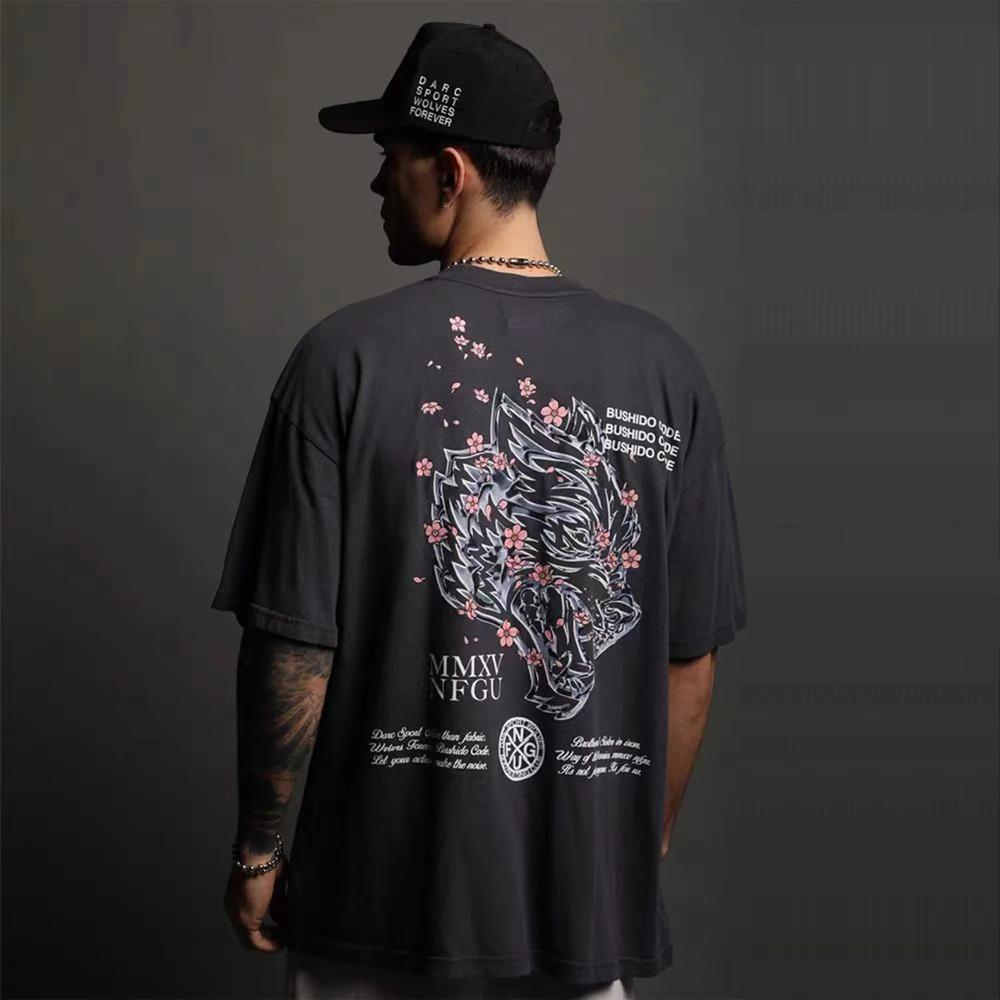 Darc Wolf Head Смешной принт Тренировка Тренажерный зал Фитнес 100% хлопок Мужская футболка с коротким рукавом Повседневная футболка Модные спортивные свободные топы Y2k