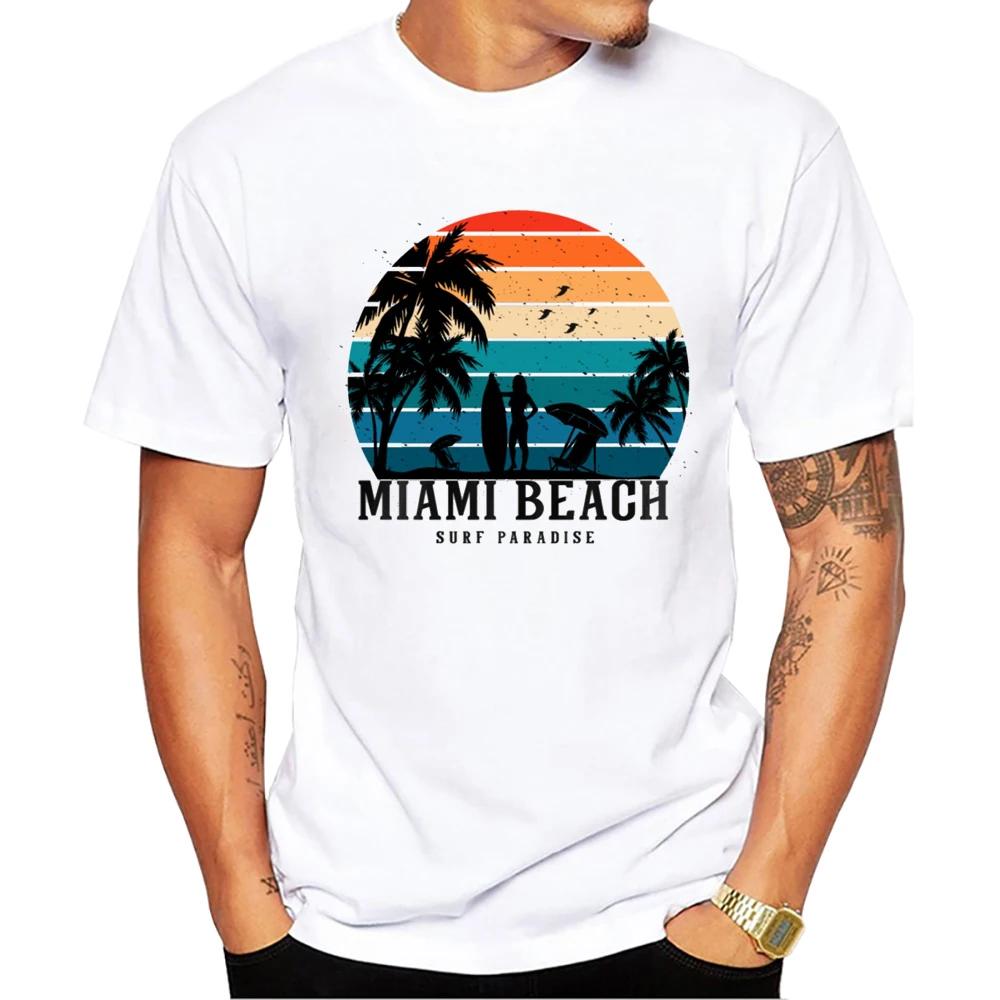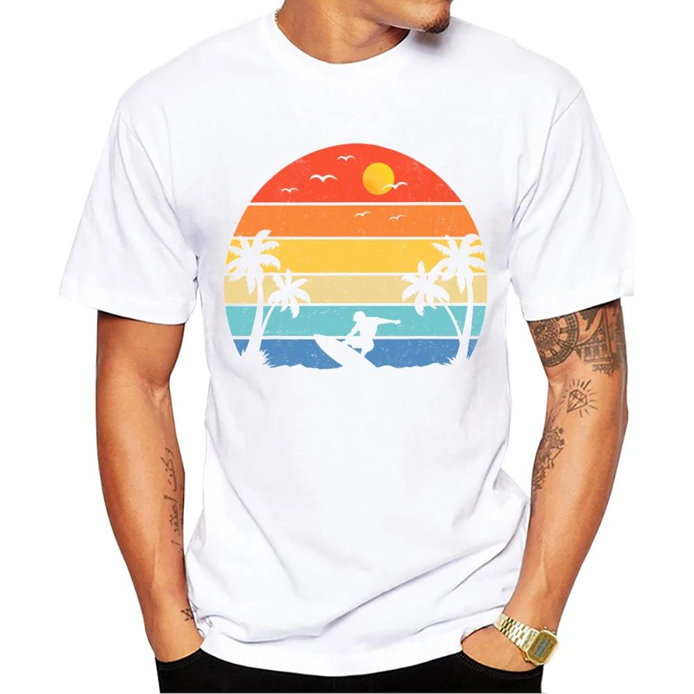 TEEHUB Повседневные футболки Хипстер Ретро Пляжный Серфер Мужские Футболки Мальчик Винтаж Закат Пляж Серф Принт Футболка с Коротким Рукавом Спортивные Топы