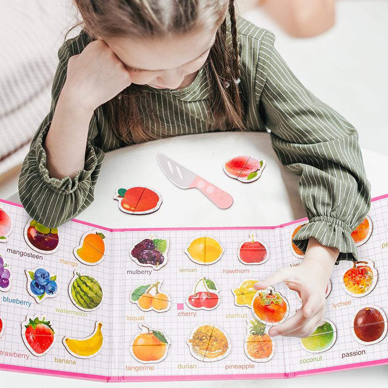 Детская портативная магнитная книга-головоломка «Фрукты, животные, познание», раннее образование, головоломка «Просвещение»