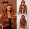 Ombre Темно-коричневые вьющиеся парики с челкой для чернокожих женщин Длинные волнистые синтетические волосы для косплея Парик Термостойкое волокно Афро-повседневный парик