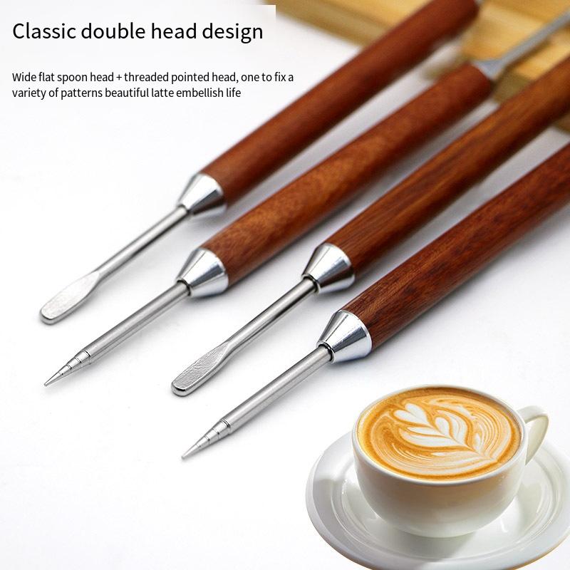 1 шт. Игла для кофе латте с ручкой из розового дерева, гравировальная игла, необычная игла для латте, гравировальная палочка, принадлежности для латте, кофейная утварь