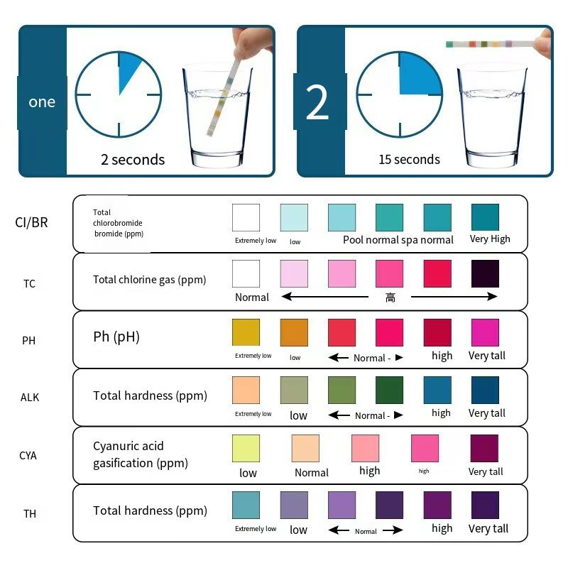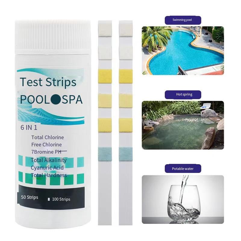 50 шт. Тестовая бумага 6 в 1 для воды в горячих источниках для бассейна, значение остаточного хлора, pH, щелочность, тест-полоска для определения жесткости