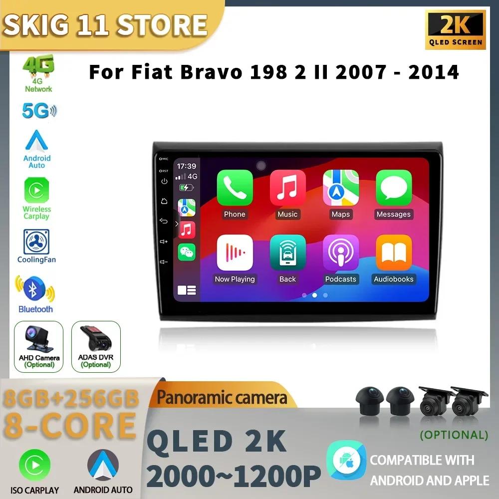 Автомобильное радио Carplay Android 13 для Fiat Bravo 198 2 II 2007 - 2014 Мультимедиа Видеоплеер сенсорный экран Навигация GPS Авто стерео
