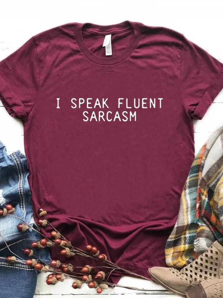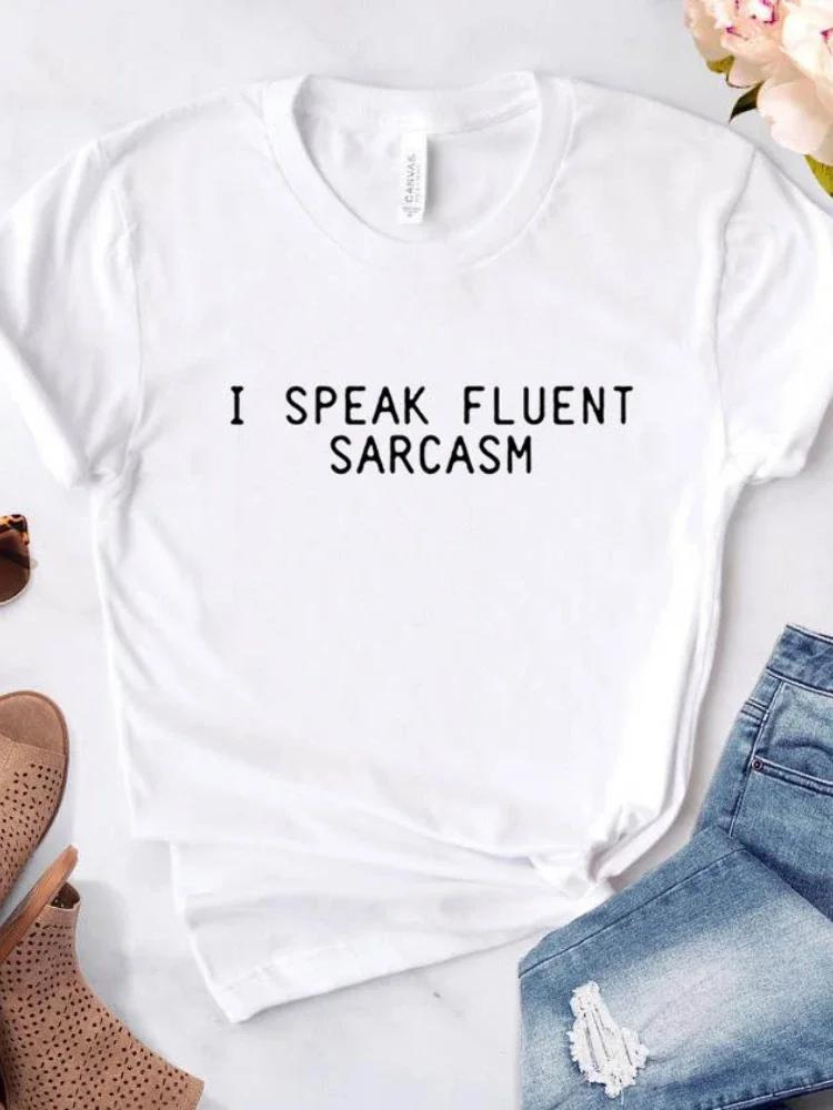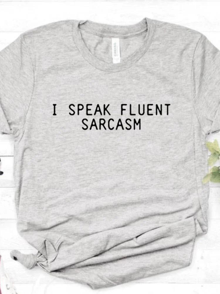 Я ГОВОРЮ БЕСПРЕПЯТСТВЕННО САРКАЗМ Футболка с принтом в виде буквы Женская футболка с коротким рукавом и круглым вырезом Свободная летняя женская футболка Топы Одежда Mujer