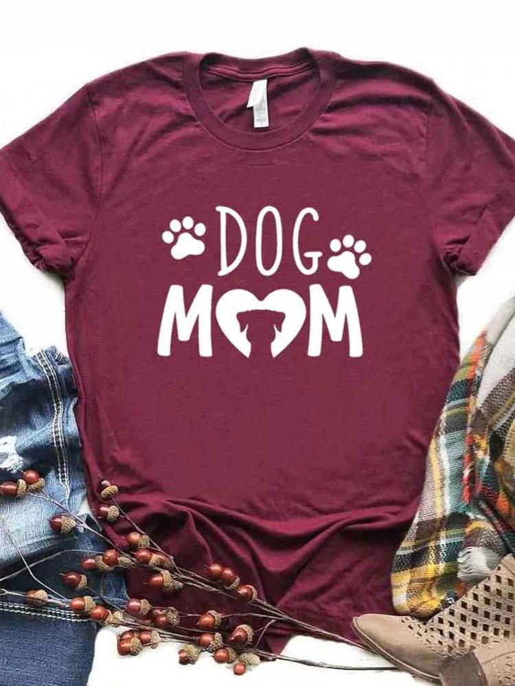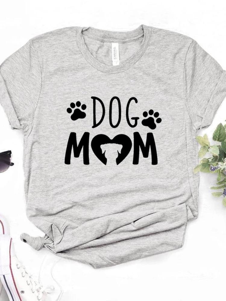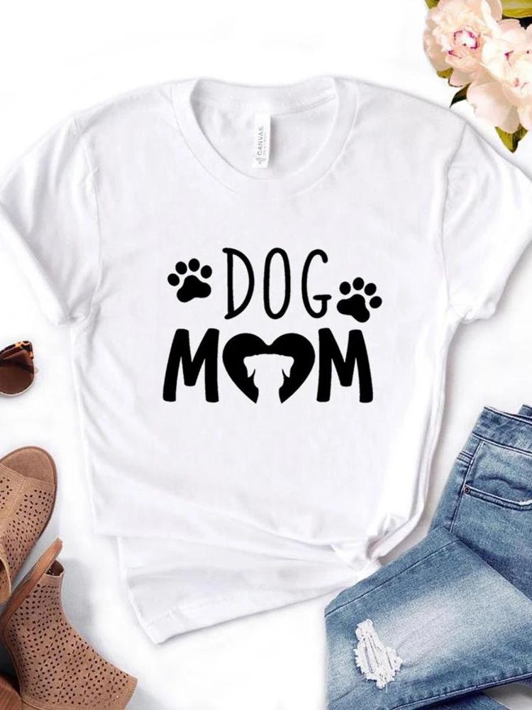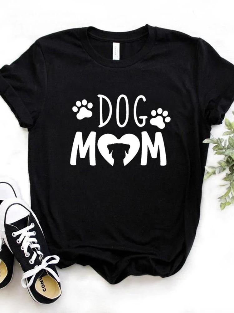 Женская футболка с принтом Dog Mom PAW Футболка женская с коротким рукавом и круглым вырезом Свободная футболка женская повседневная футболка одежда топы