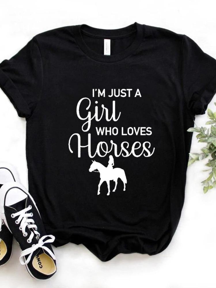 Футболка с принтом «Девушка, которая любит лошадей» женская с коротким рукавом и круглым вырезом свободная футболка летняя женская футболка топы женские рубашки