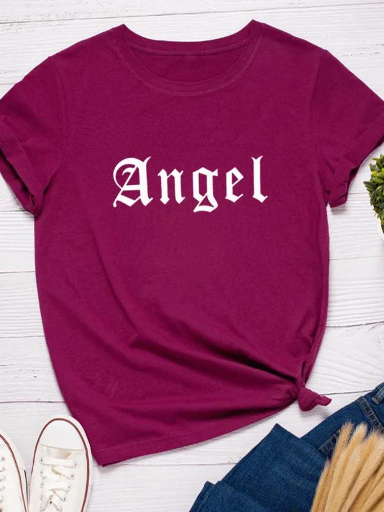 Женская футболка с буквенным принтом «Ангел», свободная женская футболка с коротким рукавом и круглым вырезом, женская футболка, топы, одежда Camisetas Mujer