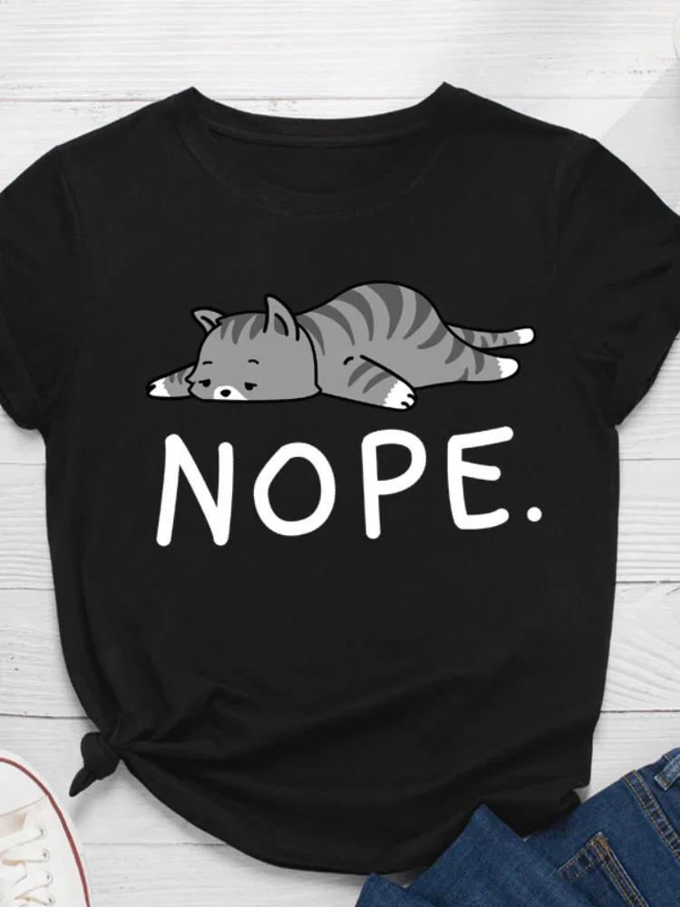 Нет, кошка принт женская футболка короткий рукав O-образный вырез свободная женская футболка женская футболка топы одежда Camisetas Mujer