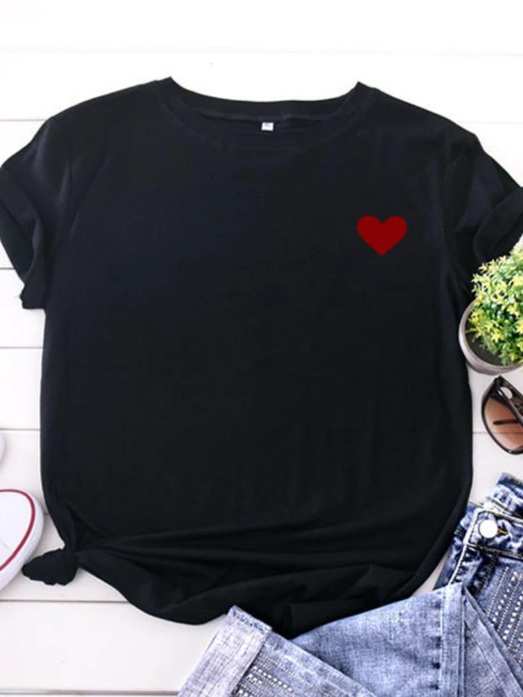 На груди маленькая красная сердечко принт футболка женская короткий рукав O-образный вырез свободная футболка летняя женская футболка топы Camisetas Mujer