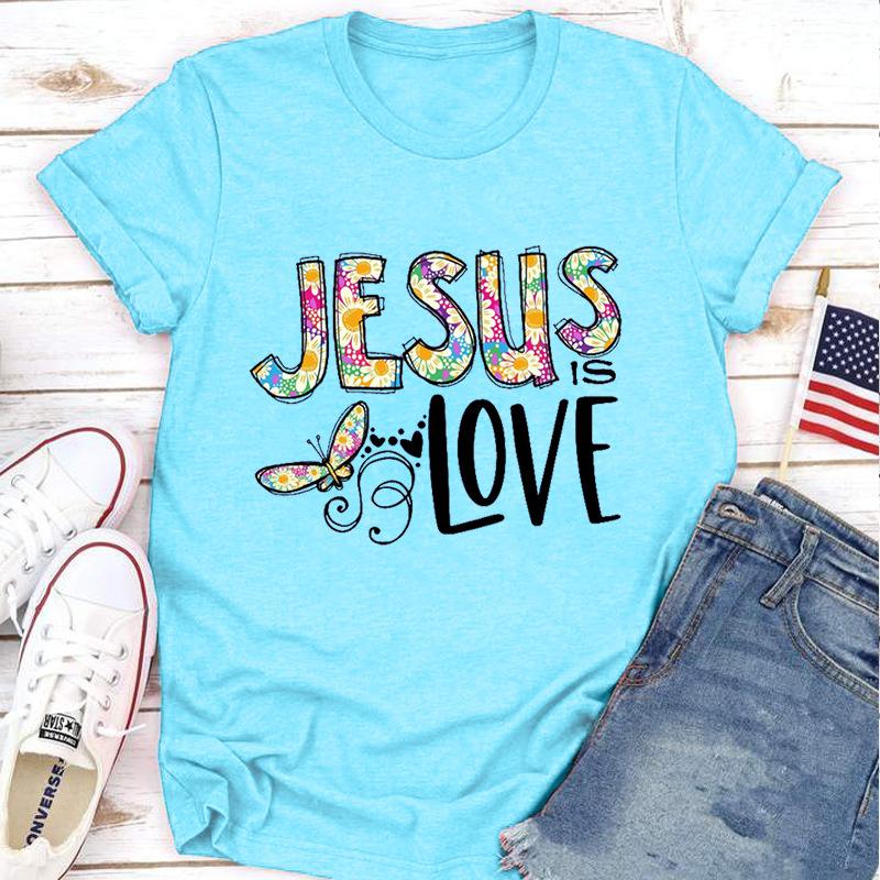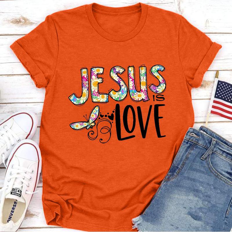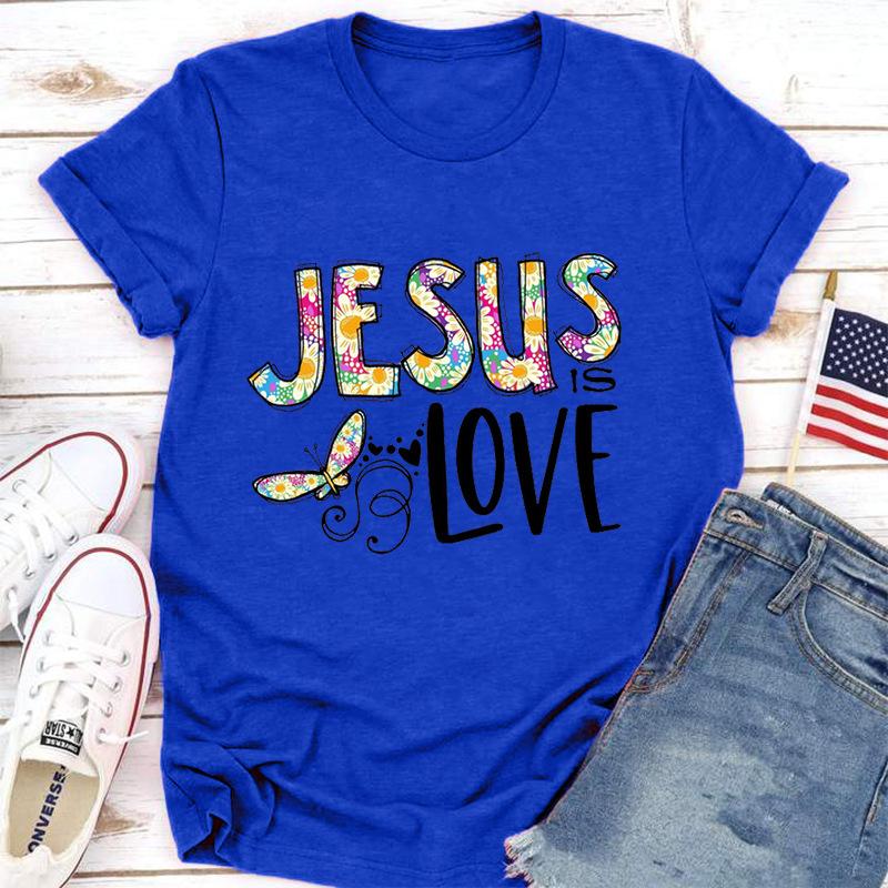 Футболка с принтом Иисуса и любви для женщин, короткий рукав, O-образный вырез, свободная женская футболка, женская футболка, топы, одежда, женские футболки