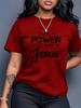 Сила в имени Иисуса Печать Женская футболка Короткий рукав O-образный вырез Свободная женская футболка Женская футболка Топы Mujer