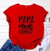 Mama Needs Coffee Print Женская футболка с коротким рукавом и круглым вырезом Свободная женская футболка Женская футболка Топы Одежда Camisetas Mujer