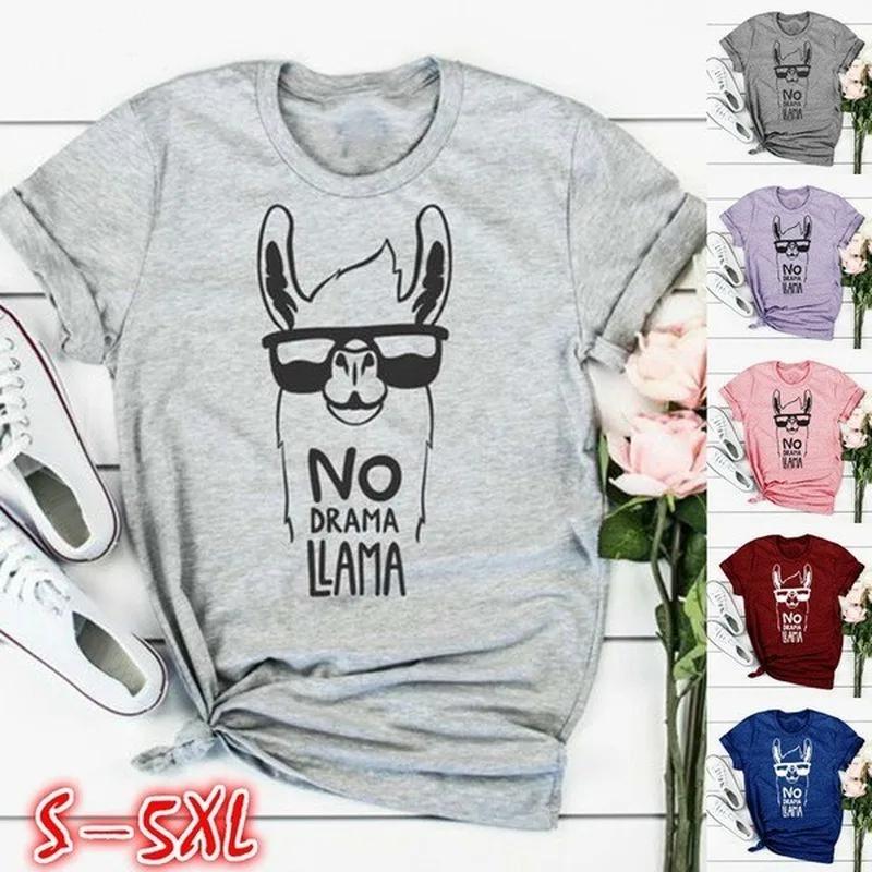Футболка с принтом ламы альпаки без драмы, женская, с коротким рукавом, с круглым вырезом, свободная, летняя, женская, топы, camisetas mujer