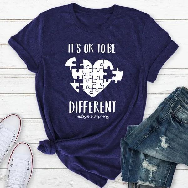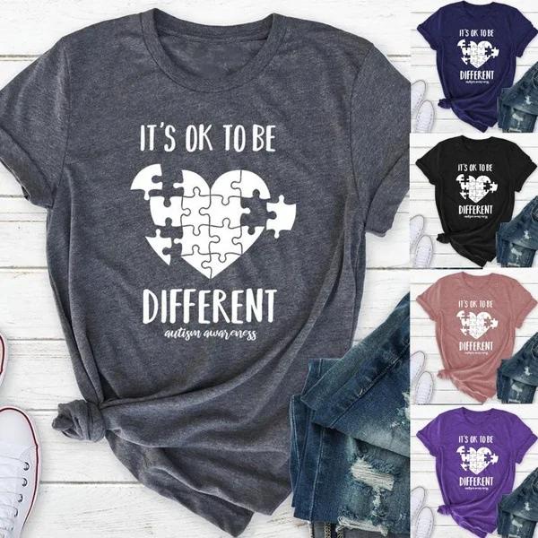 Быть Другим Пазл из Букв Принт Сердца Женская Футболка с Коротким Рукавом Круглым Вырезом Свободная Летняя Женская Футболка Топы Мухер