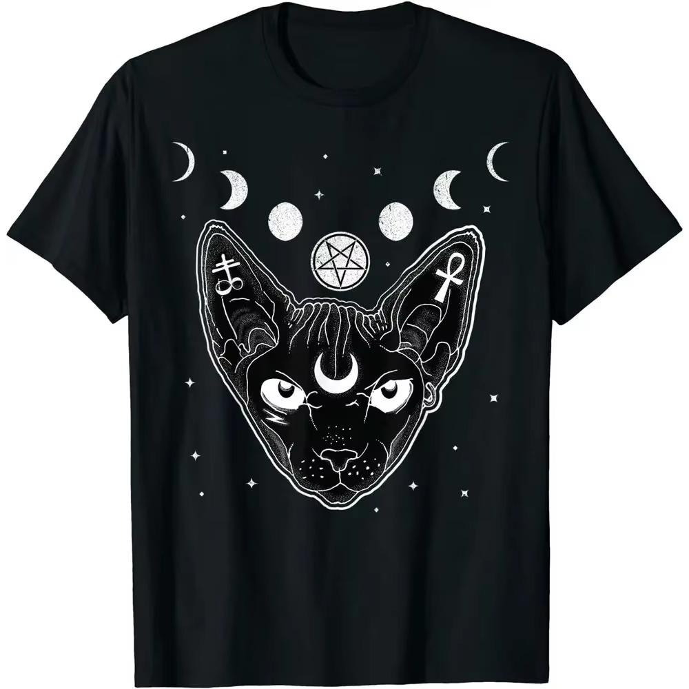 Чёрный кот Пастельный гот Оккультный В!tchy Металлическая Крутая Футболка S-5XL