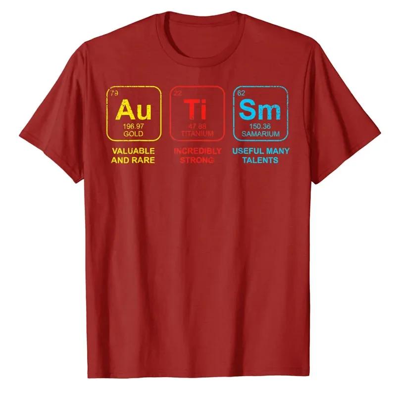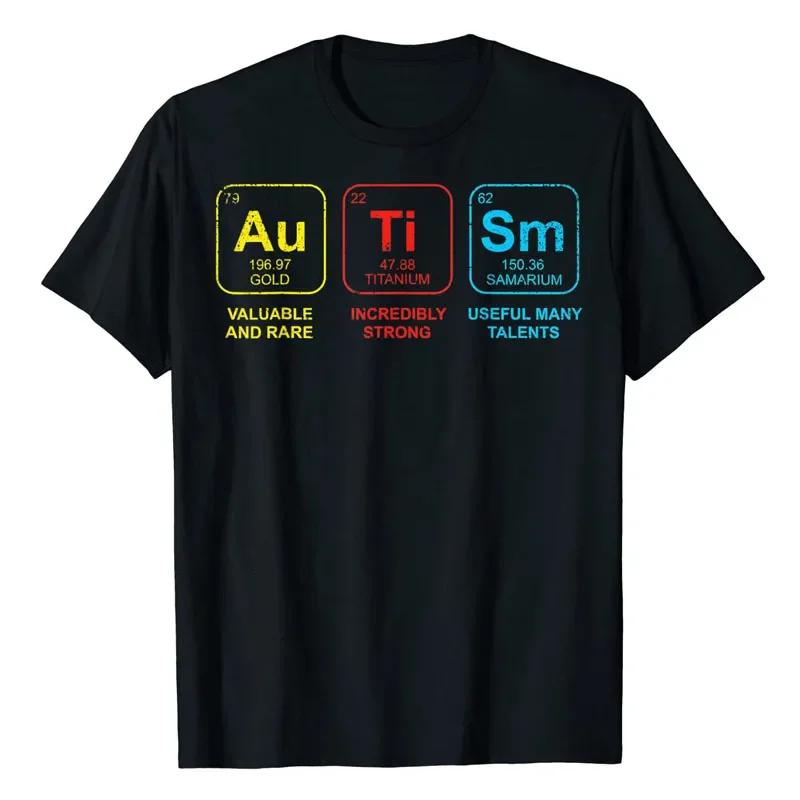 Забавная футболка с графикой периодической таблицы для осведомленности об аутизме, хлопок, уличная одежда, с коротким рукавом, подарки на день рождения, летняя футболка, мужская одежда