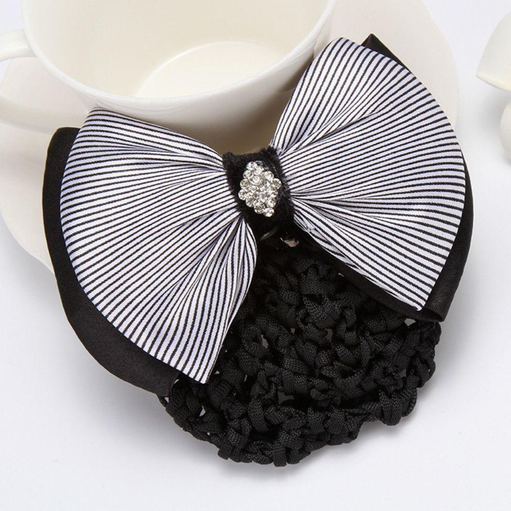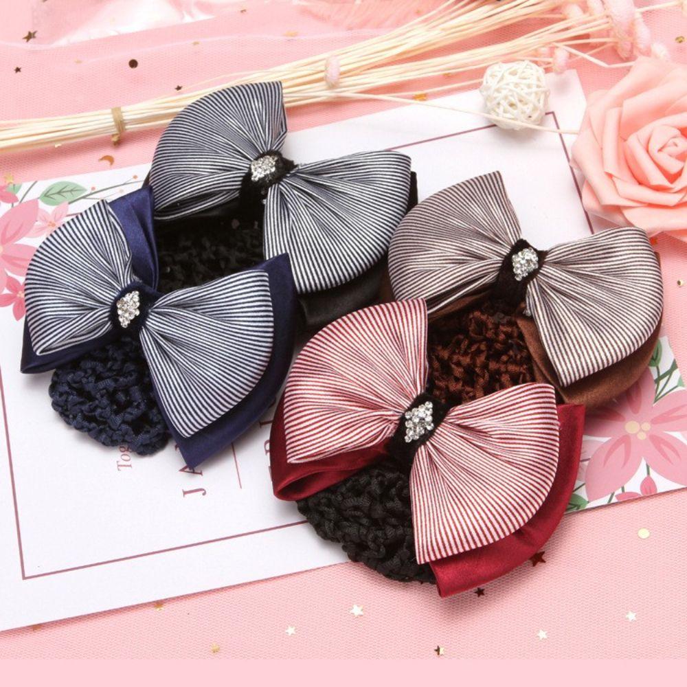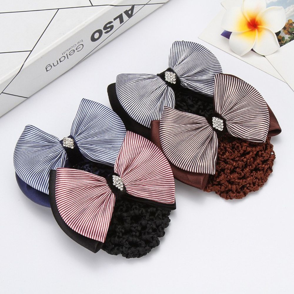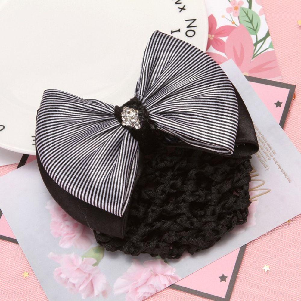 Rhinestone Ribbon Bowknot Stripe Net Bun Hair Cover Net Bun Snood Net Bun Crochet Women Barrette