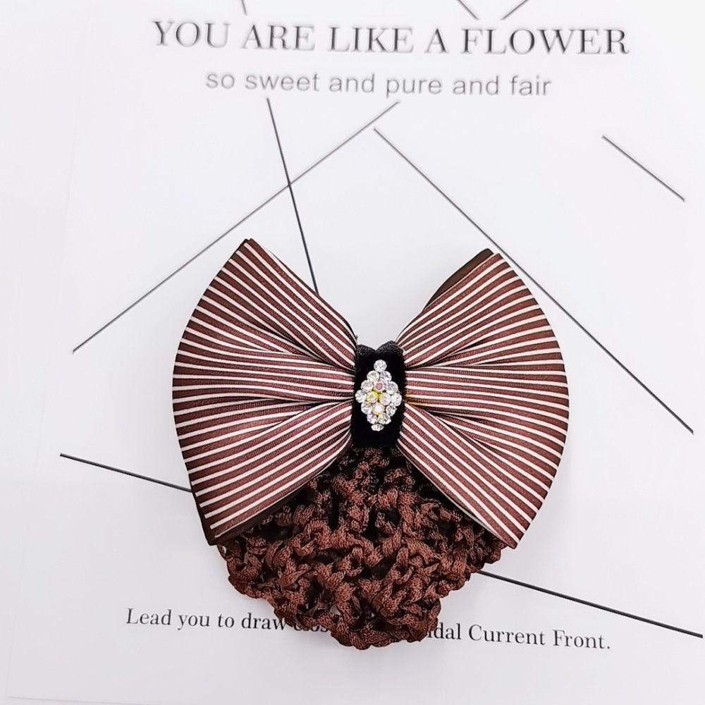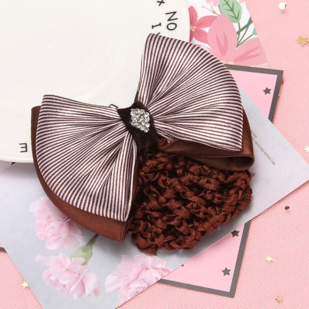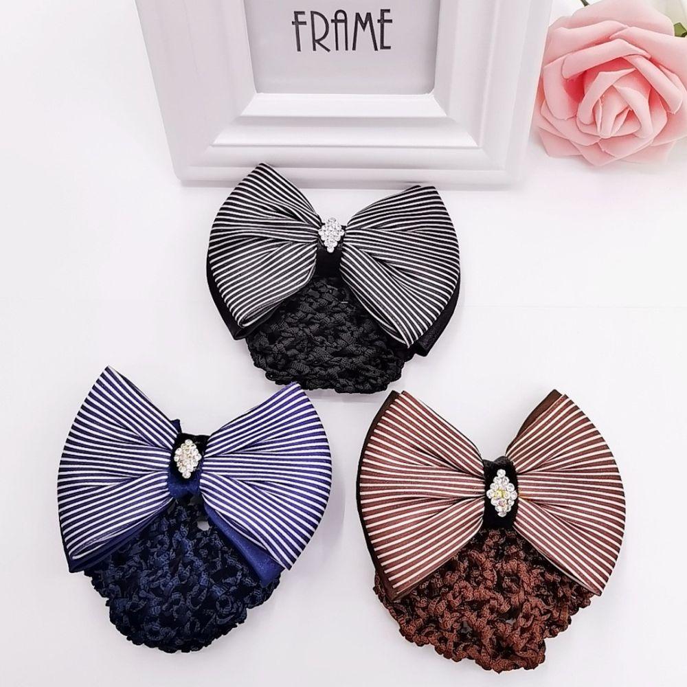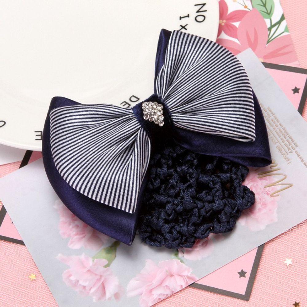 Rhinestone Ribbon Bowknot Stripe Net Bun Hair Cover Net Bun Snood Net Bun Crochet Women Barrette