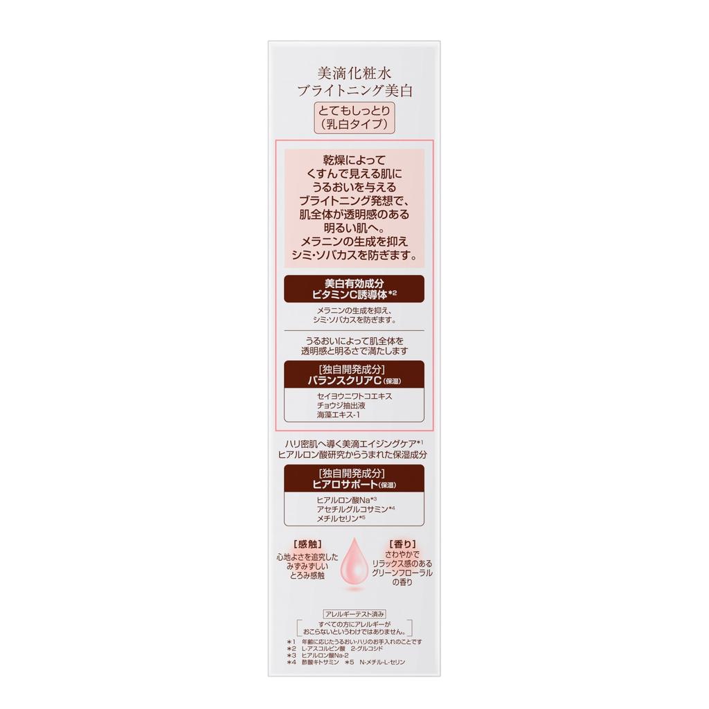 - Другие ингредиенты включают: Вода, этанол, DPG, концентрированный глицерин, гидрогенизированное касторовое масло, гидроксид калия, диглицерин, метилфенилполисилоксан, экстракт морских водорослей, монолаурат сорбитана, феноксиэтанол, экстракт гвоздики, гидрат рафинозы, метилглюкозид POE, сополимер акриловой кислоты, карбомер, ацетилглюкозамин, N-метил-L-серин, BG (Бутиленгликоль), Раствор этилглюкозида, эдетат, ксантановая камедь, экстракт цветков бузины, гиалуронат натрия, отдушка.