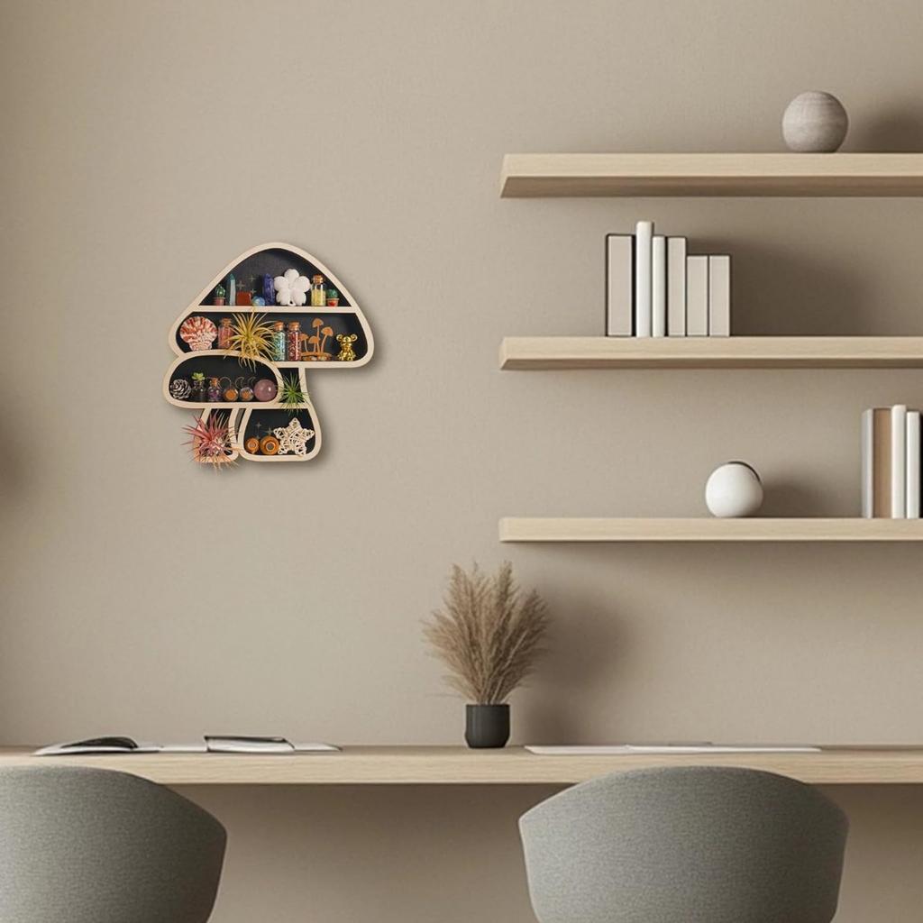 Впечатляющий дизайн: Плавающие полки в виде грибов для стены имеют очаровательную форму кластера из двух грибов, выглядят достойно, элегантно и привлекательно, идеально сочетаясь с различными стилями кристаллов и декора.