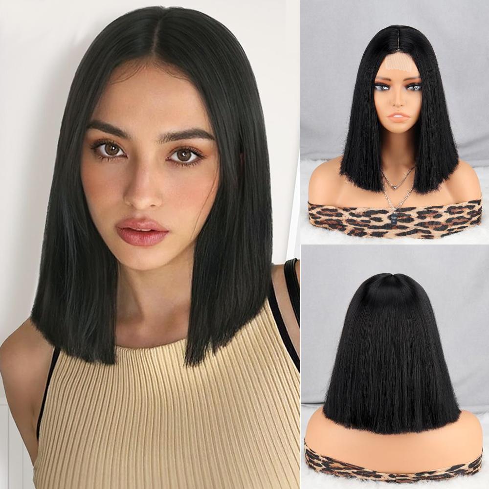 Синтетические короткие прямые парики с кружевной передней частью, без челки, натуральный вид, термостойкое волокно для элегантных женщин, одежда для косплея