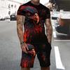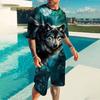 Мужской костюм, летний повседневный дышащий освежающий костюм с принтом 3D волка, свободный мужской топ, модный, короткие рукава