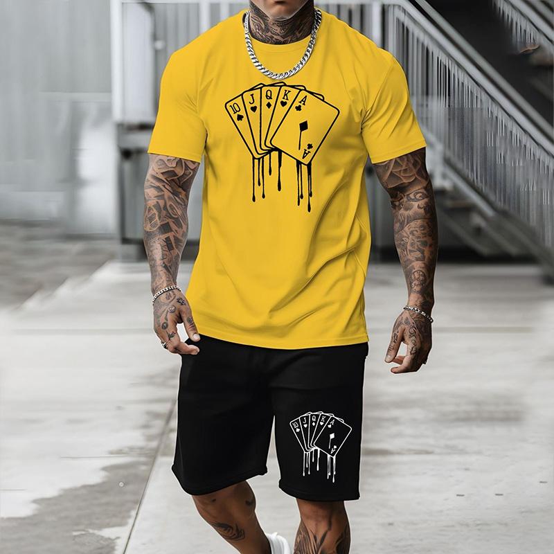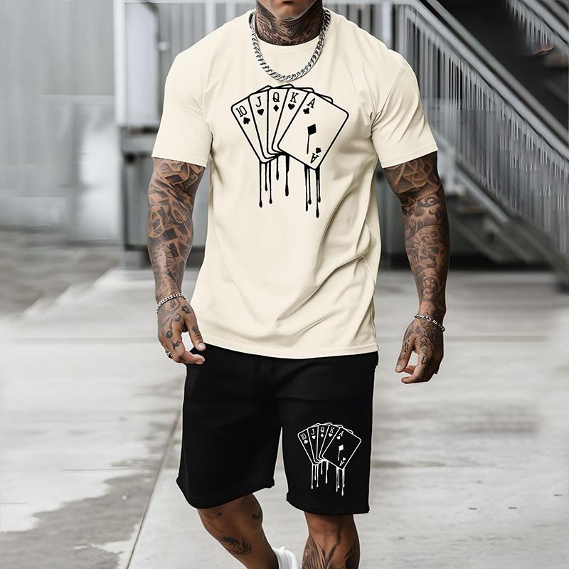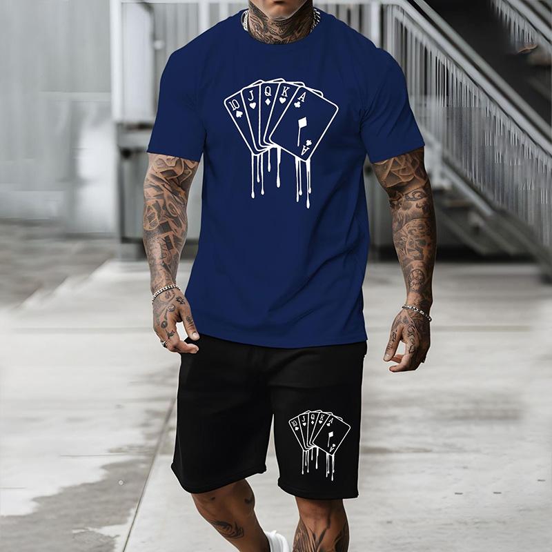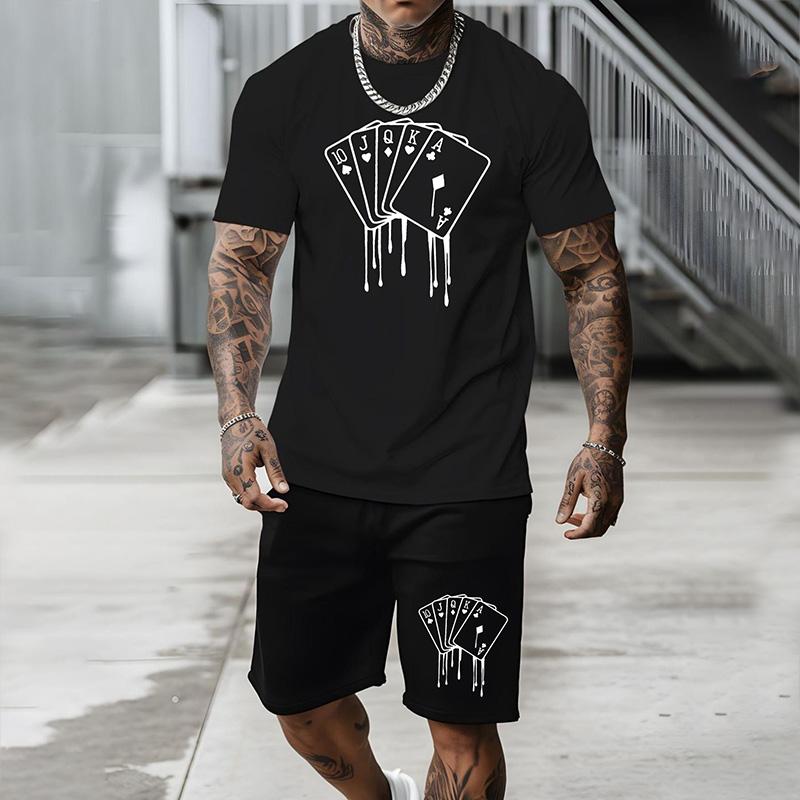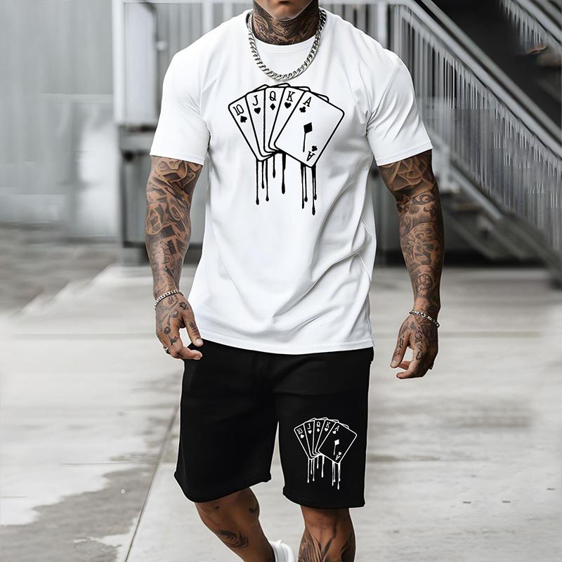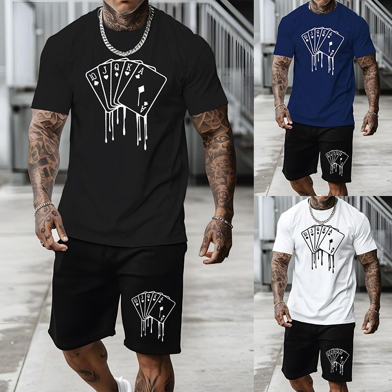 Мужской костюм свободного покроя с круглым вырезом и коротким рукавом, принт с 3D-игральными картами, летний повседневный дышащий освежающий костюм