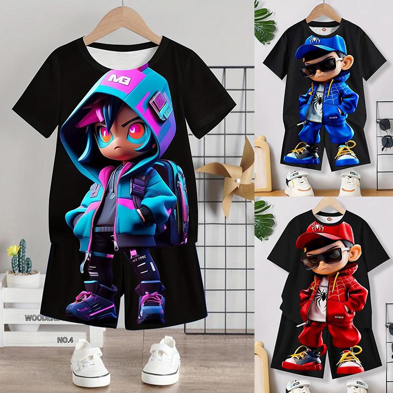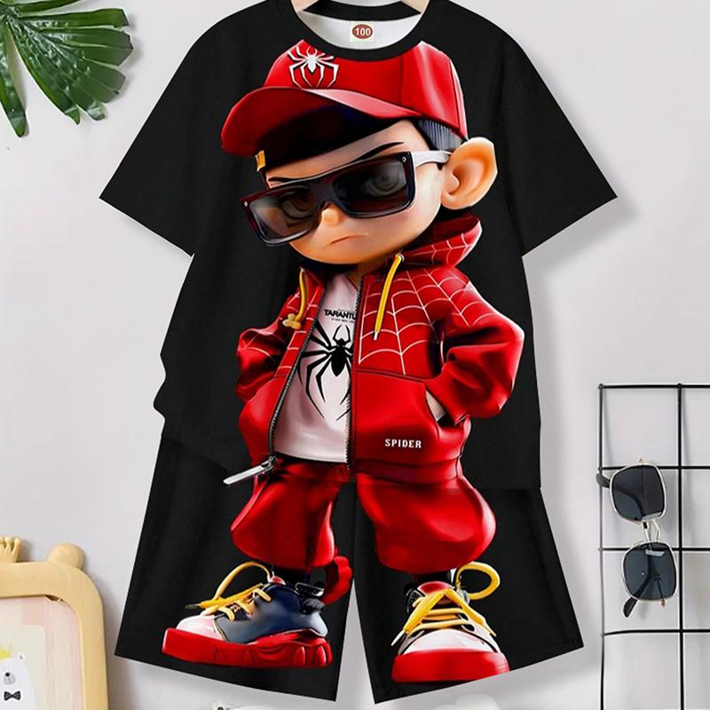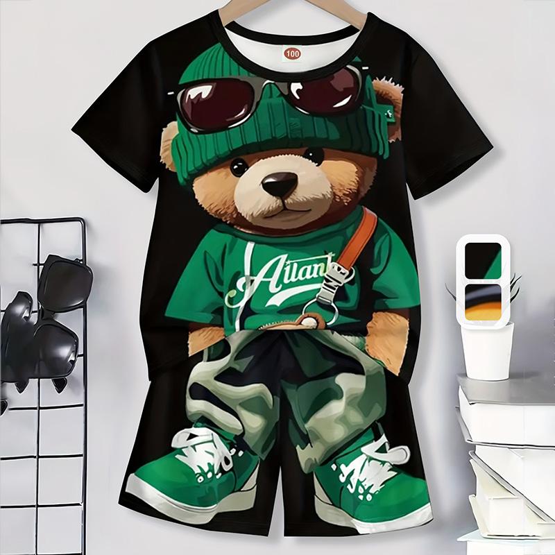 Модный новый мужской ретро костюм летний повседневный дышащий освежающий костюм уличный стиль напечатанный 3D медведь большой мужской свободный топ