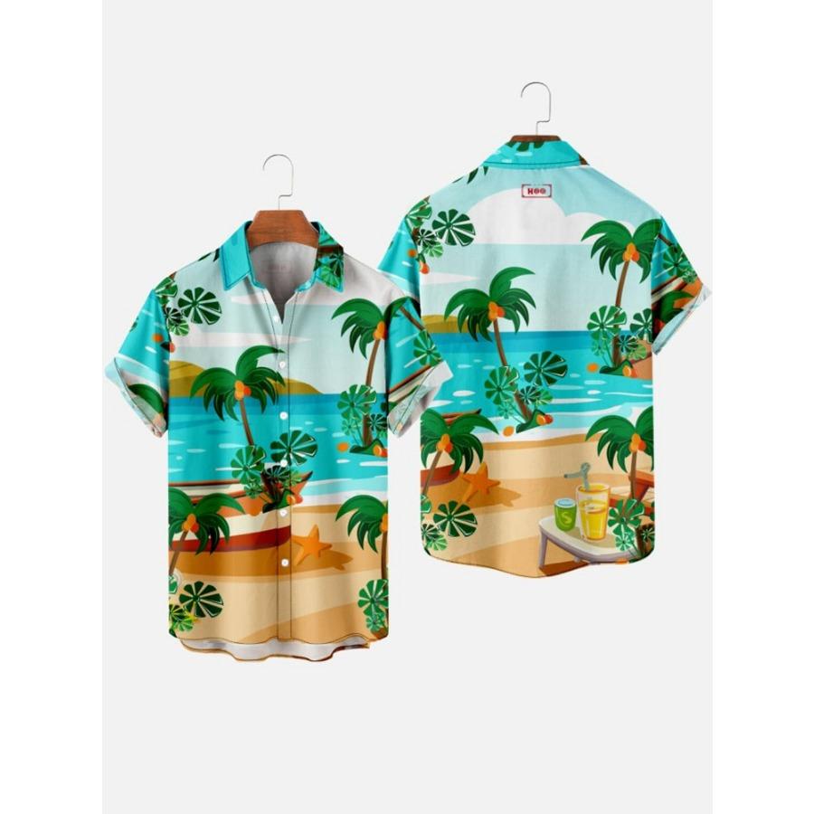 Мужские рубашки с гавайским узором из кокосовой пальмы, летняя пляжная рубашка с закатом, повседневная рубашка с короткими рукавами, изысканный 3D-принт