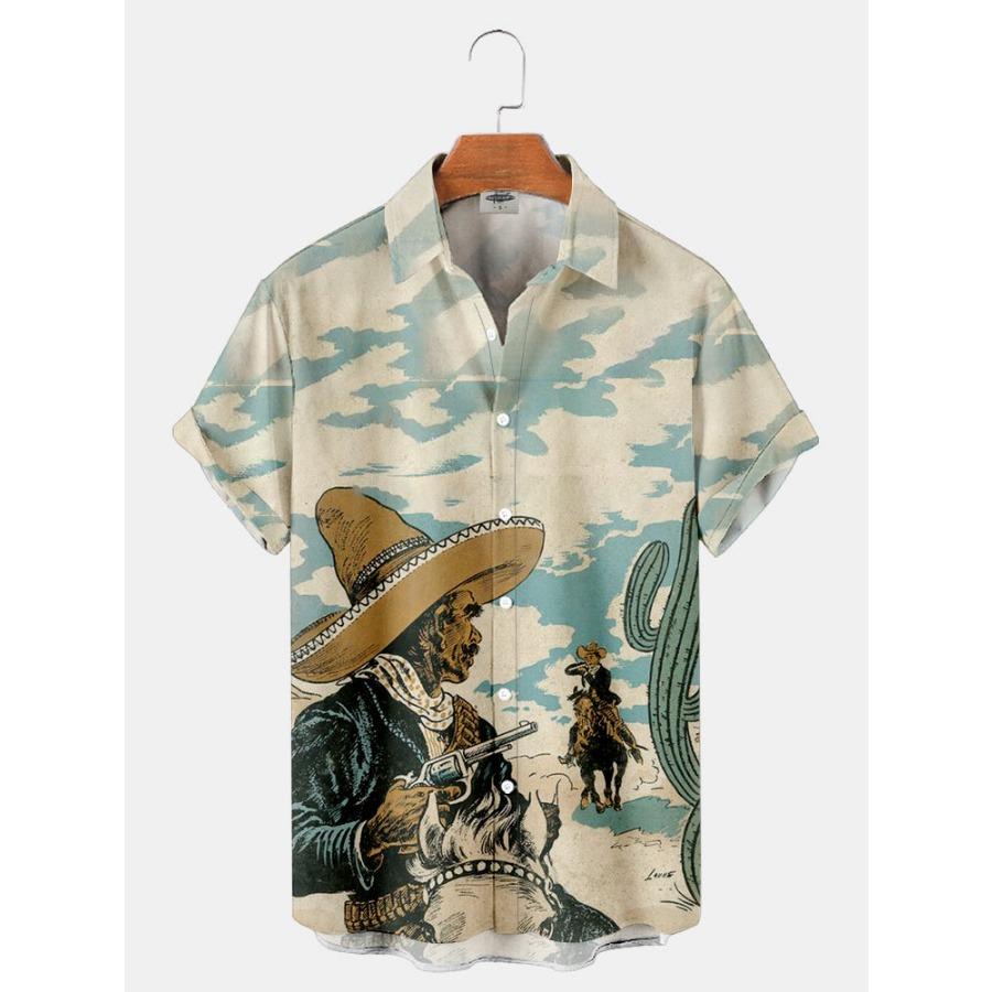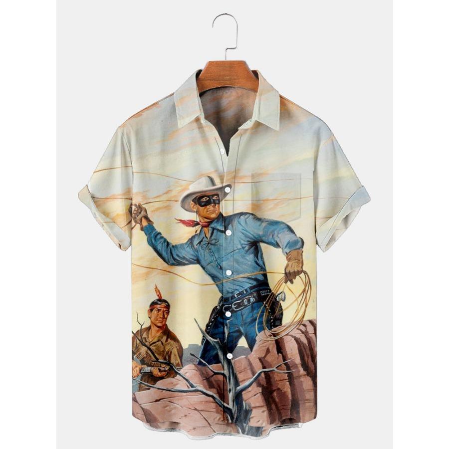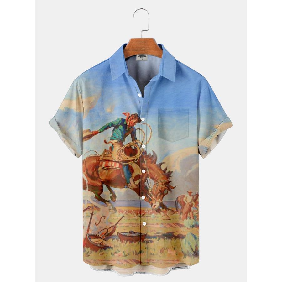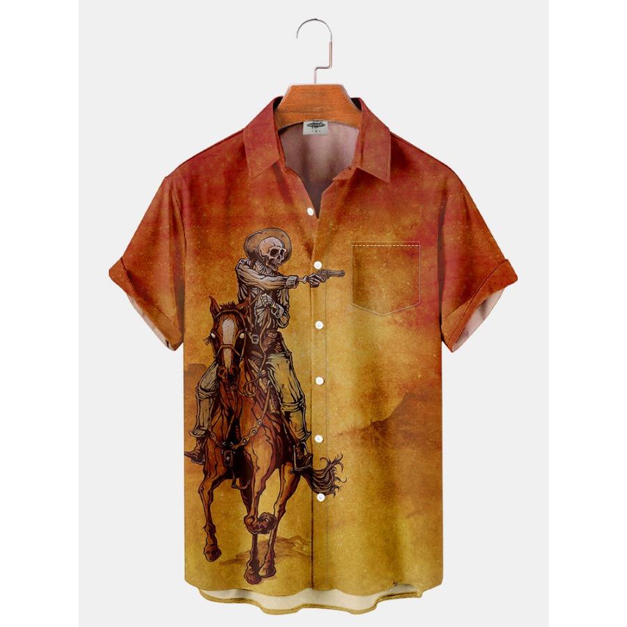 Мужская рубашка Hawaiian Cowboy с крутым цифровым принтом 3D размера плюс, мужская верхняя одежда Western America с карманом в винтажном стиле, летняя верхняя одежда