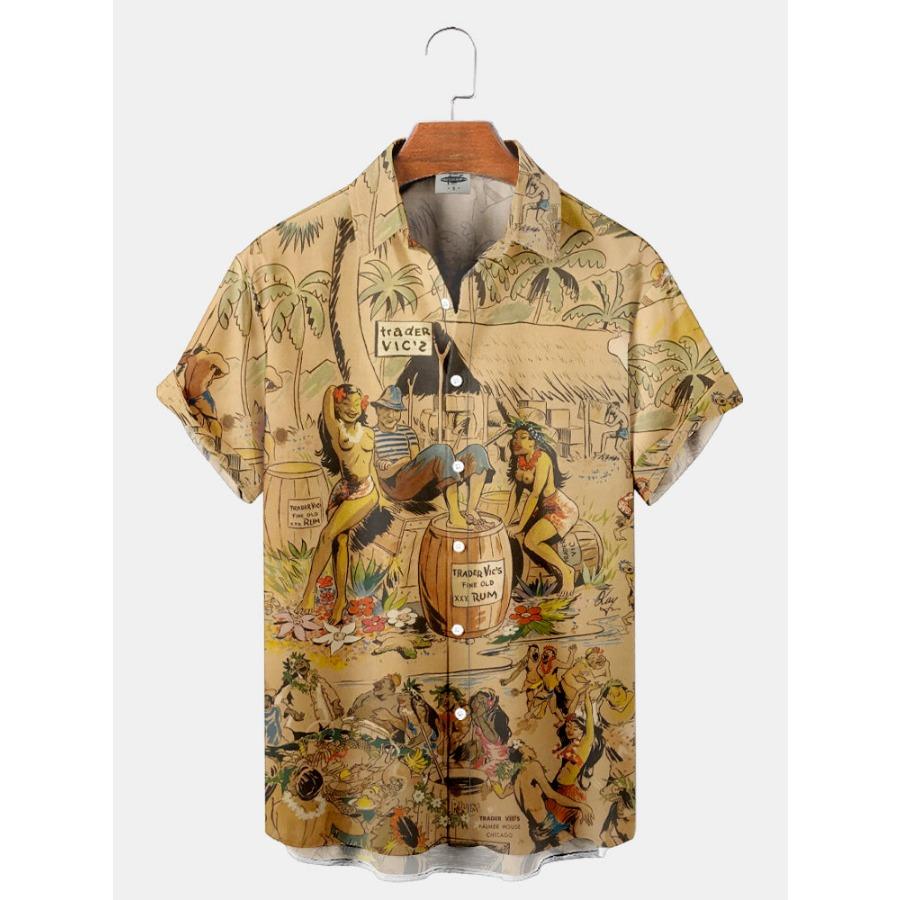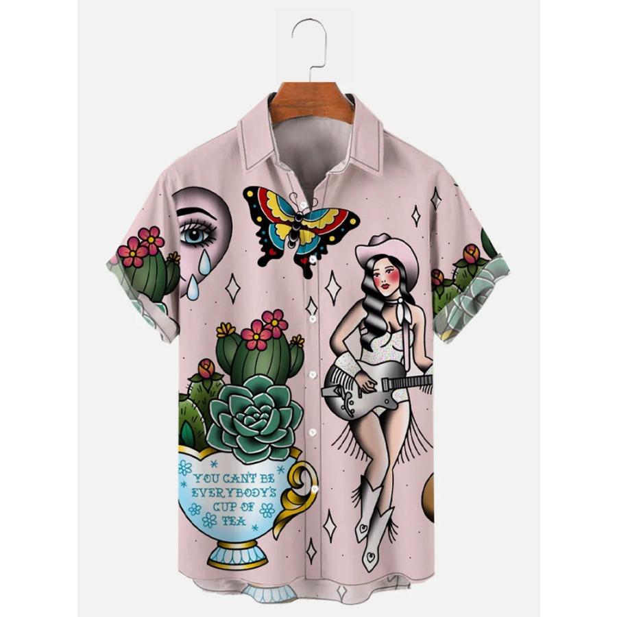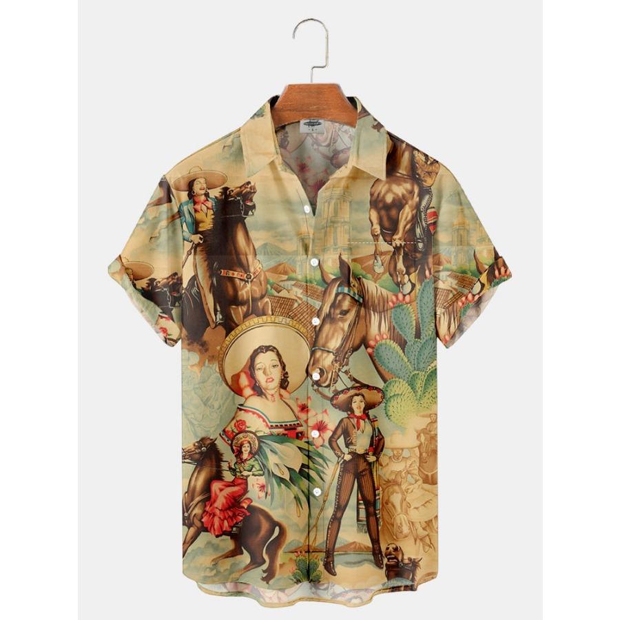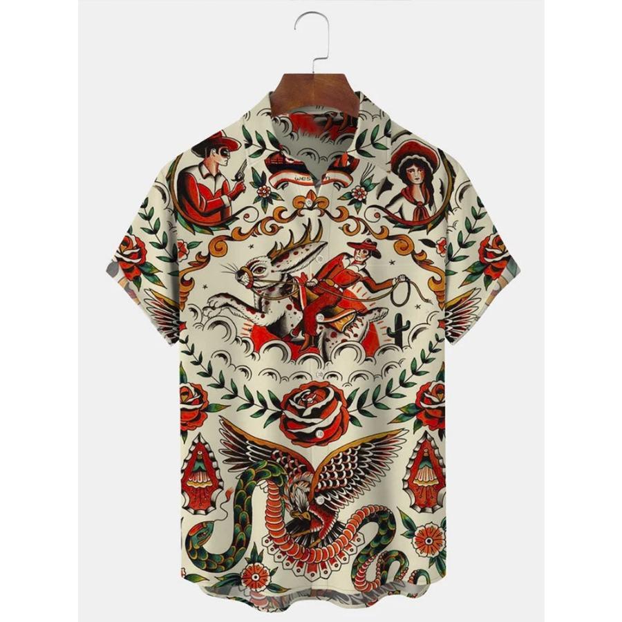 Мужская рубашка Hawaiian Cowboy с крутым цифровым принтом 3D размера плюс, мужская верхняя одежда Western America с карманом в винтажном стиле, летняя верхняя одежда