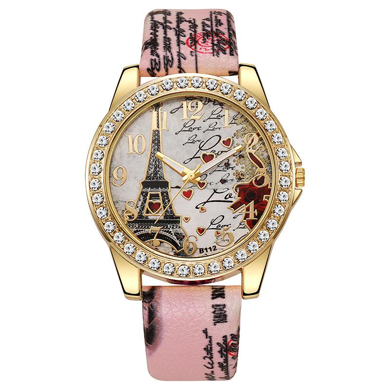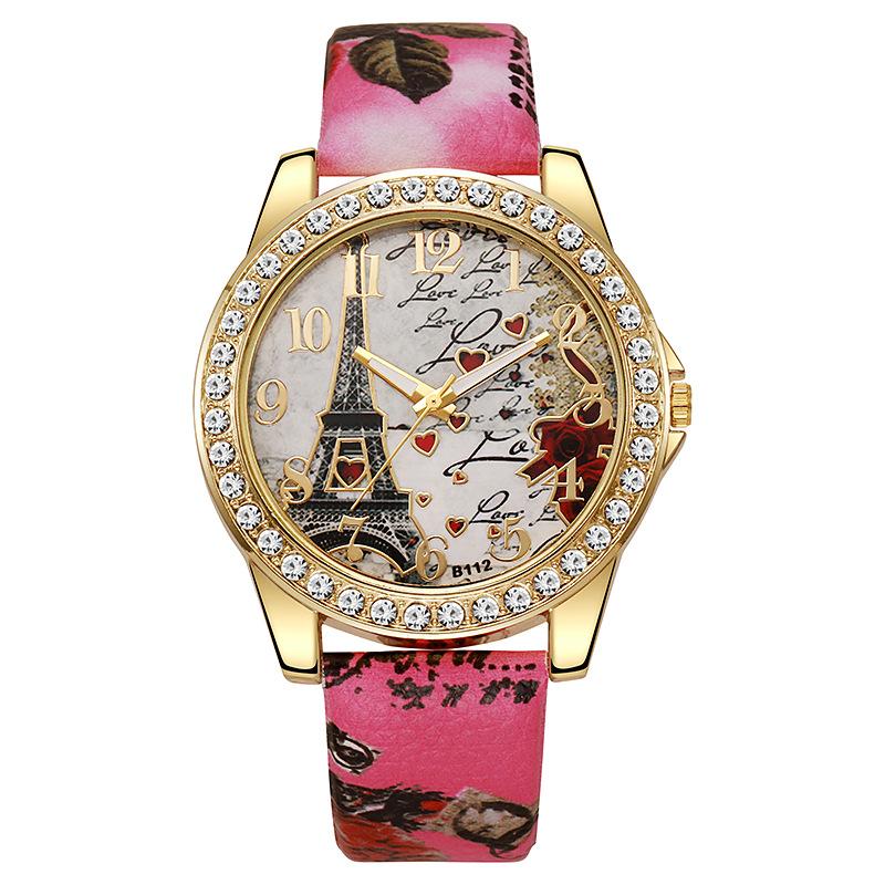 Женская мода тренд все башня цифровые цветочные звезды напечатаны ремешок для часов кварцевые часы подарок на день рождения рождество